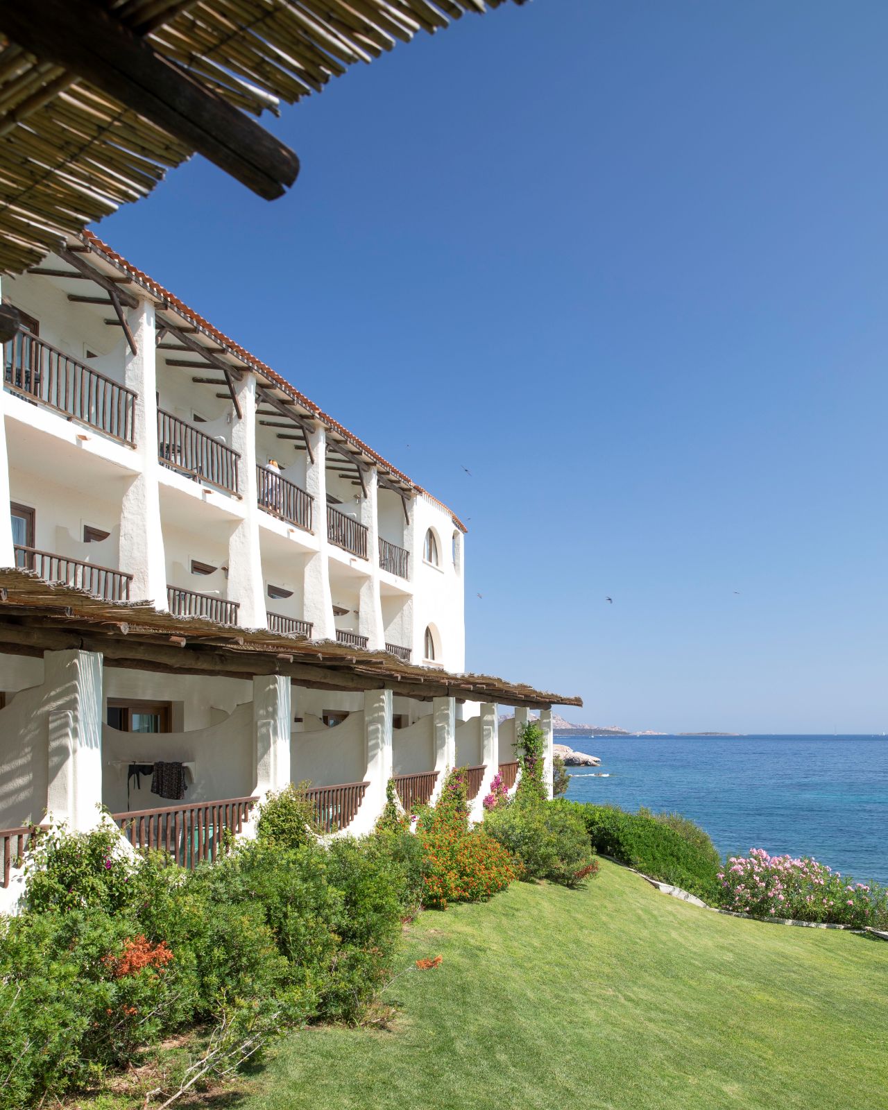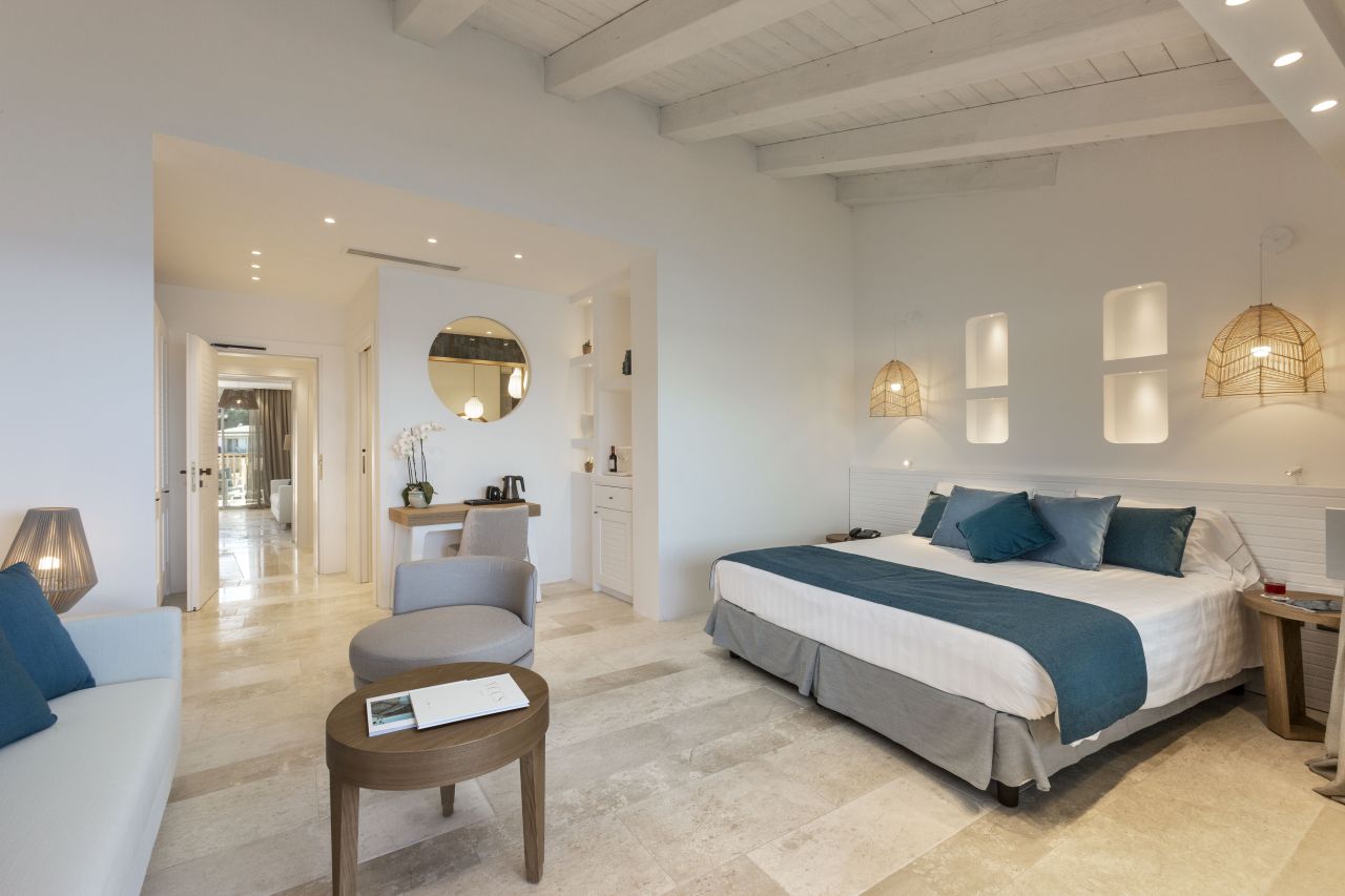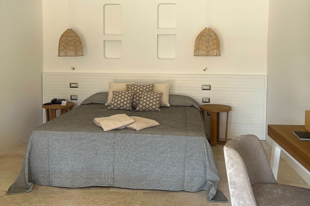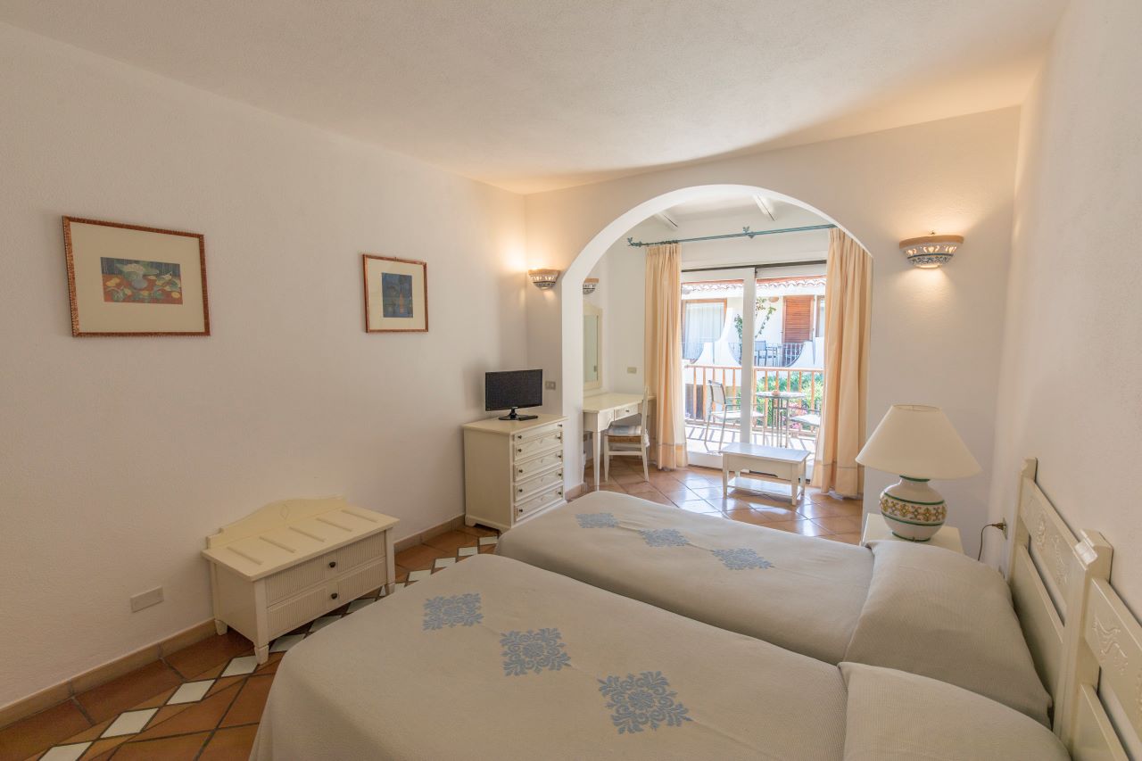 Le camere, eleganti ed accoglienti, sono progettate per assicurare il massimo relax e comfort durante il soggiorno. Sono tutte dotate di: aria condizionata, telefono e smart tv, Wi-Fi, cassaforte e bagno privato con asciugacapelli. Le Camere Classic, con letto matrimoniale o due letti singoli, situate nel corpo centrale o in quello adiacente, offrono patio o balcone attrezzato. Le Camere Deluxe sono situate principalmente nell'edificio principale e vantano un balcone o una terrazza con vista mozzafiato sulla baja. Le Junior Suite si trovano al primo e secondo piano del corpo adiacente e sono dotate di un piccolo angolo soggiorno, ideale per rilassarsi. Le Junior Suite Deluxe Vista Mare, recentemente rinnovate, offrono un ambiente open space con una vista diretta sul mare, regalando una sensazione di ampiezza e luminosità.La quota comprende