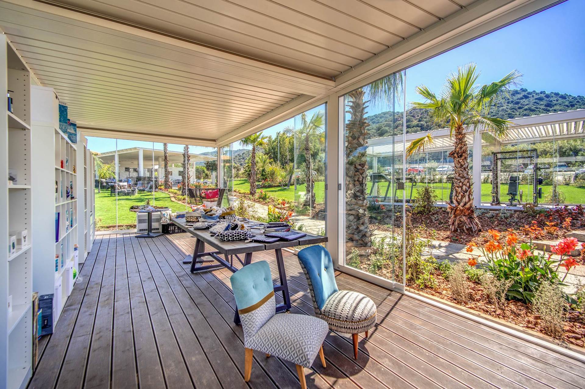 Tutte con patio arredato con tavolino e due sedie. Design leggero, semplice e funzionale.