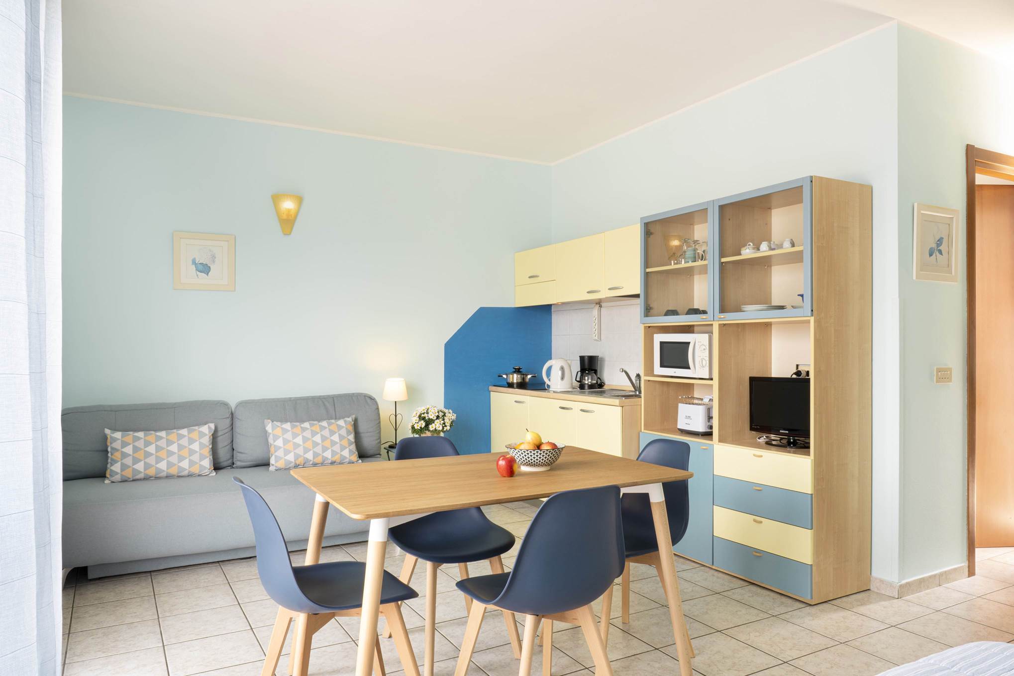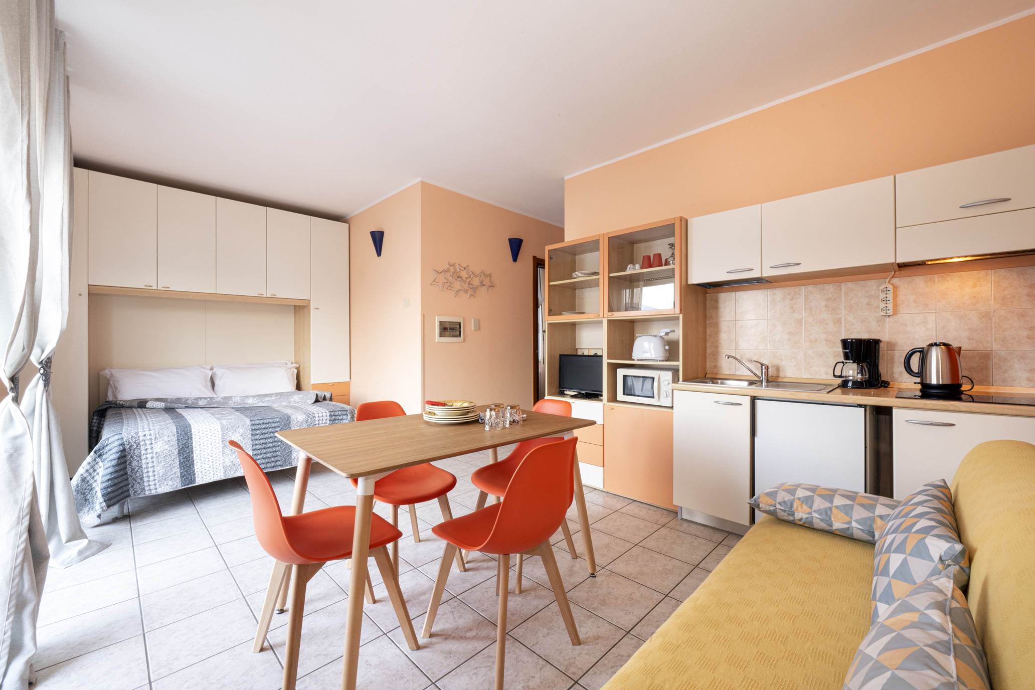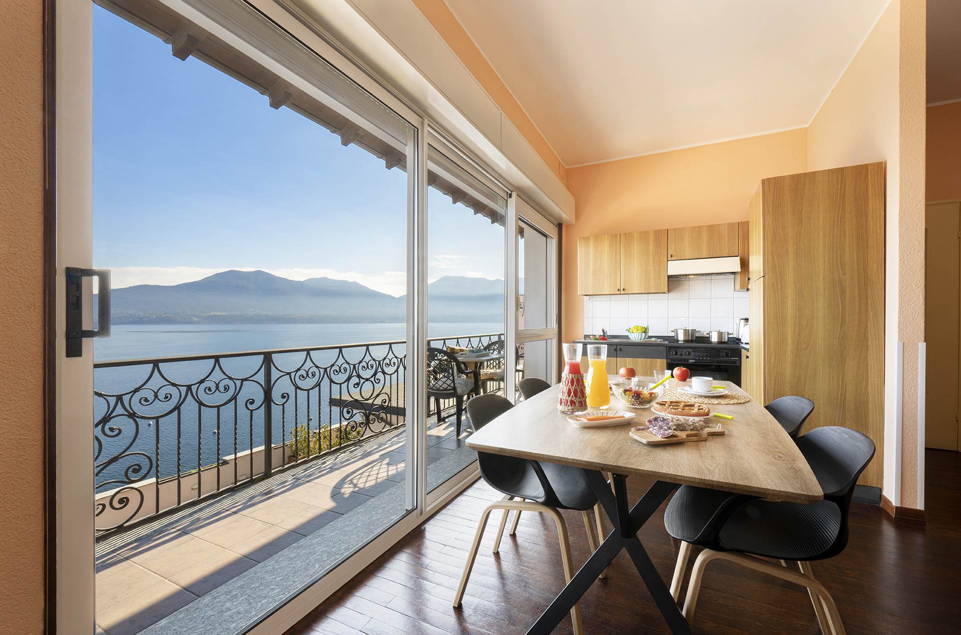 BILO Bilocale Standard: Su 2 piano o piano unico, in dependance o casa madre, 45mq, soggiorno con 1 divano letto doppio e 1 letto singolo a scomparsa, 1 camera matrimoniale, angolo cottura, bagno con doccia, balcone o terrazza con sedie e tavolo e ombrellone. BILO5 Bilocale Attico: al 2°piano in dependance, unico appartamento, 45mq, soggiorno con 1 divano letto doppio e 1 singolo a scomparsa, 1 camera matrimoniale, angolo cottura, bagno con doccia. Ampia vista lago ed enorme balcone con sedie, tavolo e ombrellone. BILO6 Bilocale Panorama Suite: In casa madre, 50 mq, soggiorno con 1 letti matrimoniale, 1 divano letto doppio, 1 camera a letti singoli a castello, angolo cottura, bagno con doccia, ampio balcone con vista lago con sedie, tavolo e ombrellone. Aria condizionata disposizione. Tutti gli appartamenti sono dotati di: 4 fuochi ad induzione (ellettrici) microonde bollitore e macchina caffè americano tostapaneLa quota comprende