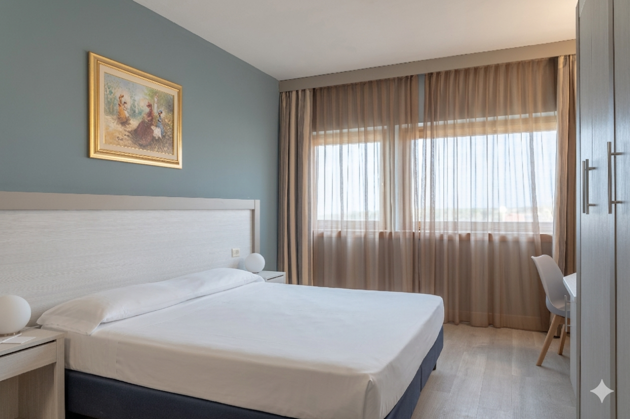 Sistemazione scelta, Trattamento di pernottamento e colazione, Accesso alla piscina, Accesso alla palestra, Wi-Fi.La quota non comprende