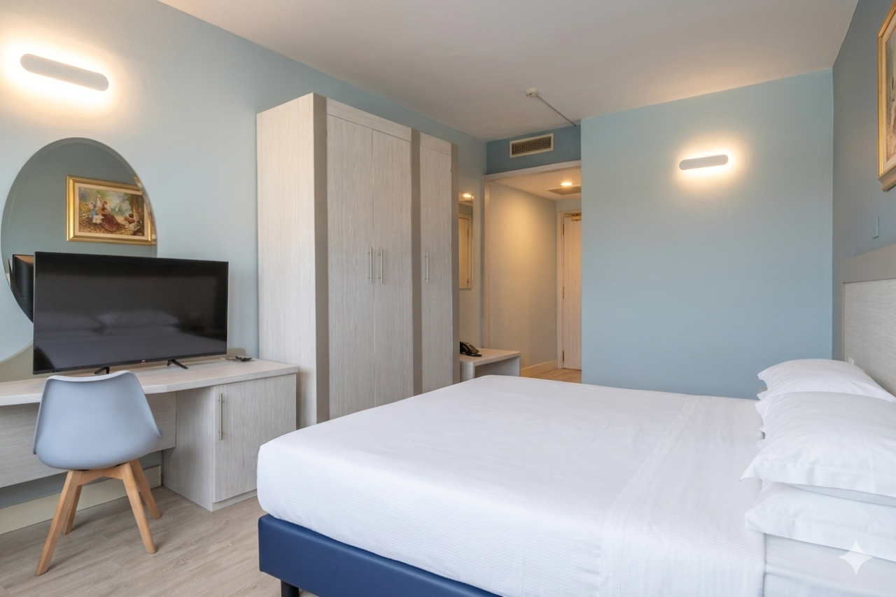 Intime ed accoglienti, le sistemazioni del Grand Hotel Continental sono accessoriate e dotate di tutti i comfort necessari per garantire soggiorni piacevoli e rilassanti - tra cui aria condizionata, cassaforte, TV, connessione Wi-Fi, minibar e bagno privato con doccia. Alcune presentano un balcone, da richiedere in fase di prenotazione. Camera doppia Classic: 16 mq, dotata di un letto matrimoniale. L’affaccio è sul giardino, sulla piazza principale oppure sulla piscina ed hanno vista mare laterale. Camera tripla Classic: 18 mq, dotata di un letto matrimoniale ed un letto singolo aggiunto, è ideale per ospitare fino a 3 persone. Camera doppia Privilege: da 14 a 16 mq, ideali per due ospiti. Recentemente rinnovate, dispongono di bagni moderni con doccia in cristallo. Poste al primo, secondo o terzo piano, hanno vista mare laterale ed offrono un’atmosfera intima ed accogliente.Amici a 4 Zampe