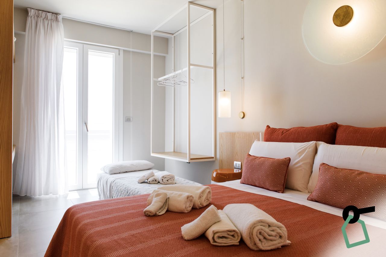 L'Hotiday Apartments Torre Lapillo propone appartamenti per due, tre o quattro ospiti, funzionali e curati nei minimi dettagli, progettati per offrire comfort, praticità e un’atmosfera accogliente. Sono tutti dotati di aria condizionata, TV, minibar, cassaforte, bagno privato con doccia e balcone. Appartamento 2 pax: letto matrimoniale (non separabile), più eventuale culla;Appartamento 3 pax: letto matrimoniale (non separabile) + pouf-letto singolo, più eventuale culla;Appartamento 4 pax: letto matrimoniale (non separabile) + letto a castello, più eventuale culla;Amici a 4 Zampe