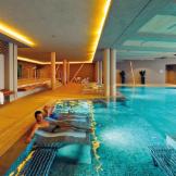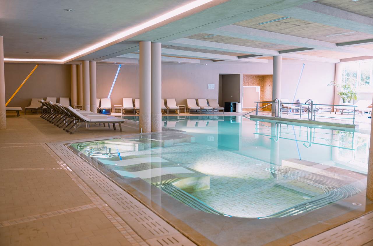 Disponibili una piscina interna riscaldata (145?m², acqua a 32?°C) e una esterna, oltre ad aree idromassaggio e cascate cervicali.