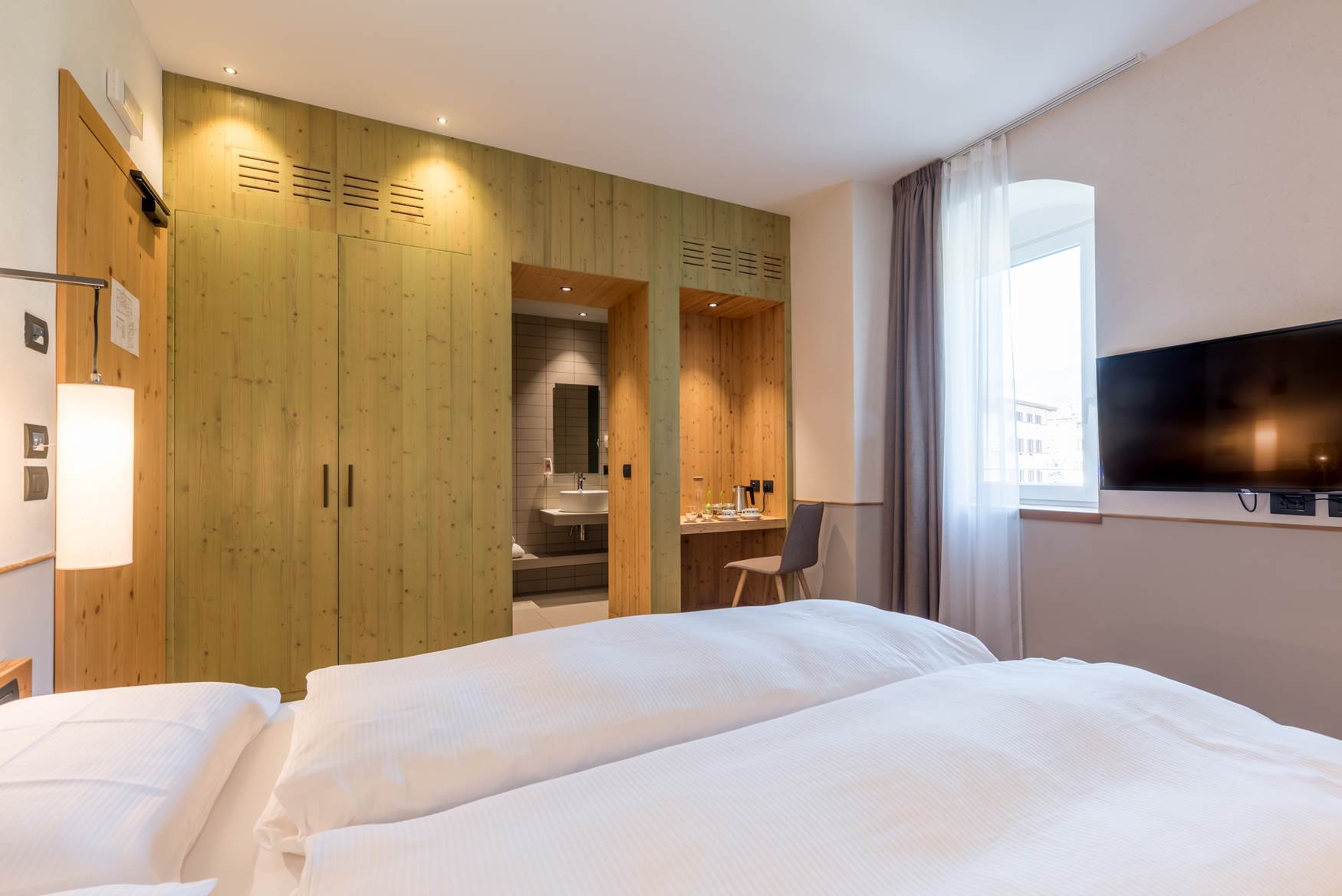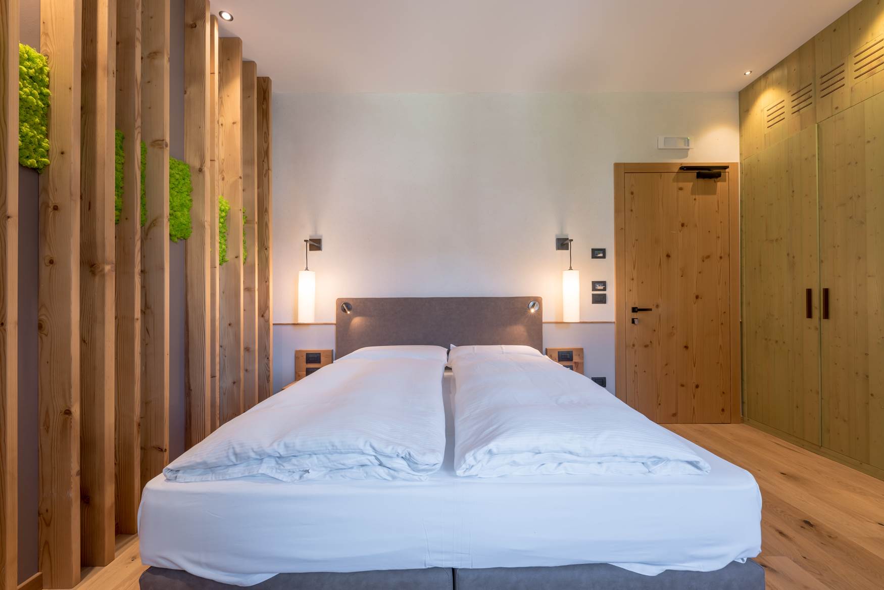 D2 Camera doppia Dolomiti Emotion, 14 mq. Dispongono di bagno o doccia, phon, telefono, TV SAT, safe, Wi-fi BB2 Camera doppia Green Emotion, 16 mq. Dispongono di phon, telefono, TV SAT, safe, Wi-fi, frigobar Tutte le camere con piumoni e cuscini memory-foamLa quota comprende