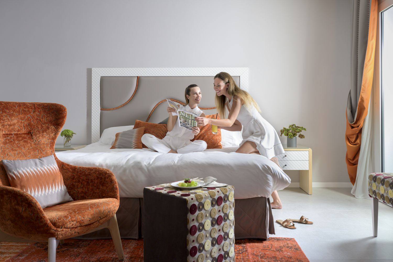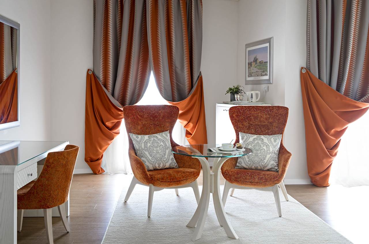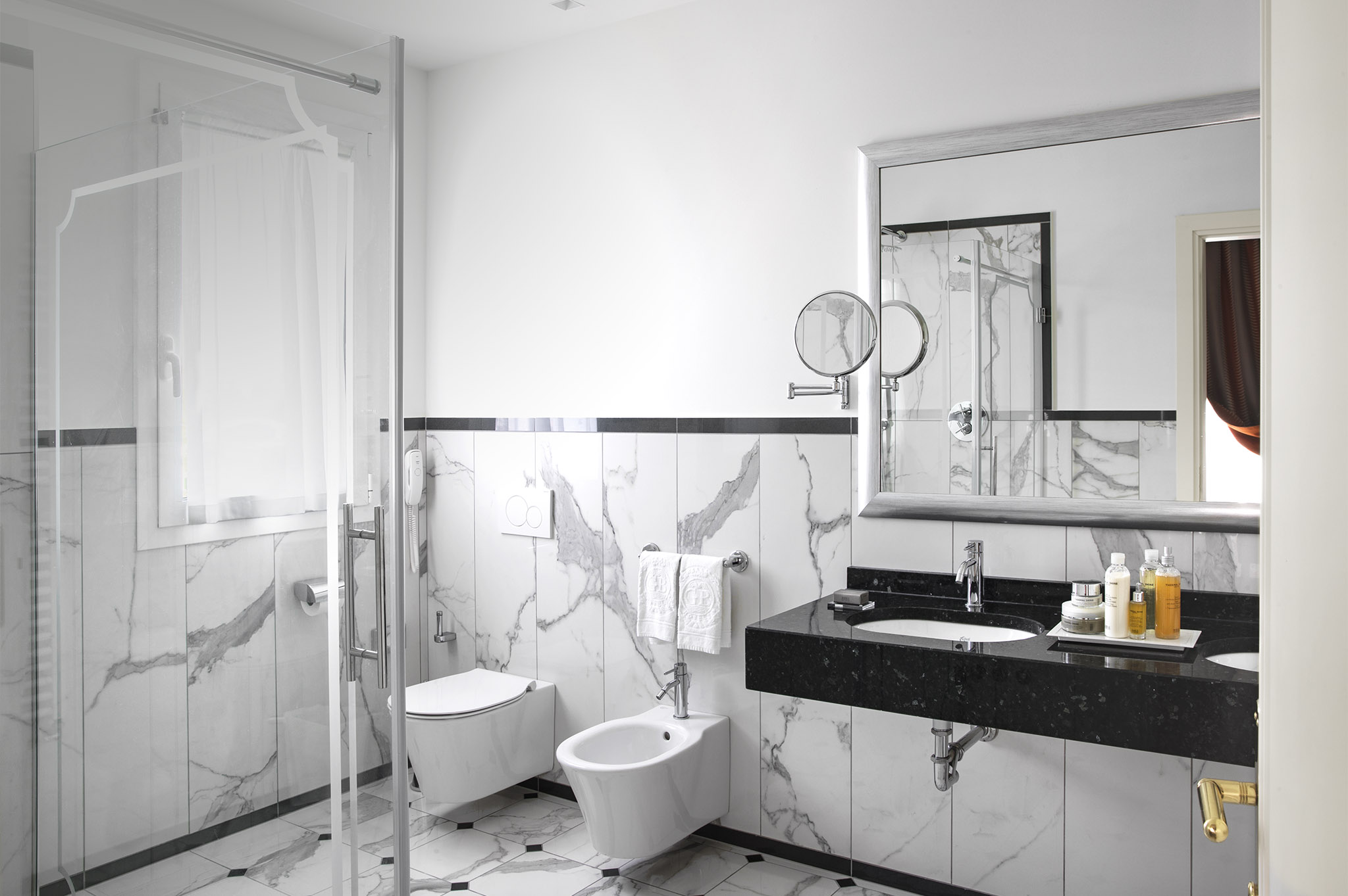 Nelle camere e nelle suites, tutto è pensato per unire alle suggestioni del passato le più raffinate piacevolezze contemporanee. Servizi in camera: aria condizionata, asciugacapelli, accappatoio, ciabatte, teli piscina, sveglia, telefono diretto, TV satellitare LCD, radio, Wi-Fi, minibar (a pagamento), bollitore e cassaforte. Junior Suite: elegante Junior Suite con balcone e suggestiva vista sul bellissimo parco e sulle 4 piscine termali. Camera di 45 mq, con moquette, è arredata con stile ed eleganza e dispone di bagno in marmo pregiato, con doppio lavabo, vasca e box doccia separato. Disponibile sia con letto matrimoniale o letti separati e possibilità di aggiungere un terzo letto. Esclusivo set di cortesia e VIP welcome all'arrivo. Senior Suite White: nuova Senior Suite White da 49 mq a 54 mq con grande balcone e vista a Nord sulla città e parco interno. Grande letto King size o 2 letti twin. Luminoso bagno in marmo nei toni latte e greige con spaziose e comode docce. Esclusivo set di cortesia. VIP Welcome all'arrivo.Amici a 4 Zampe