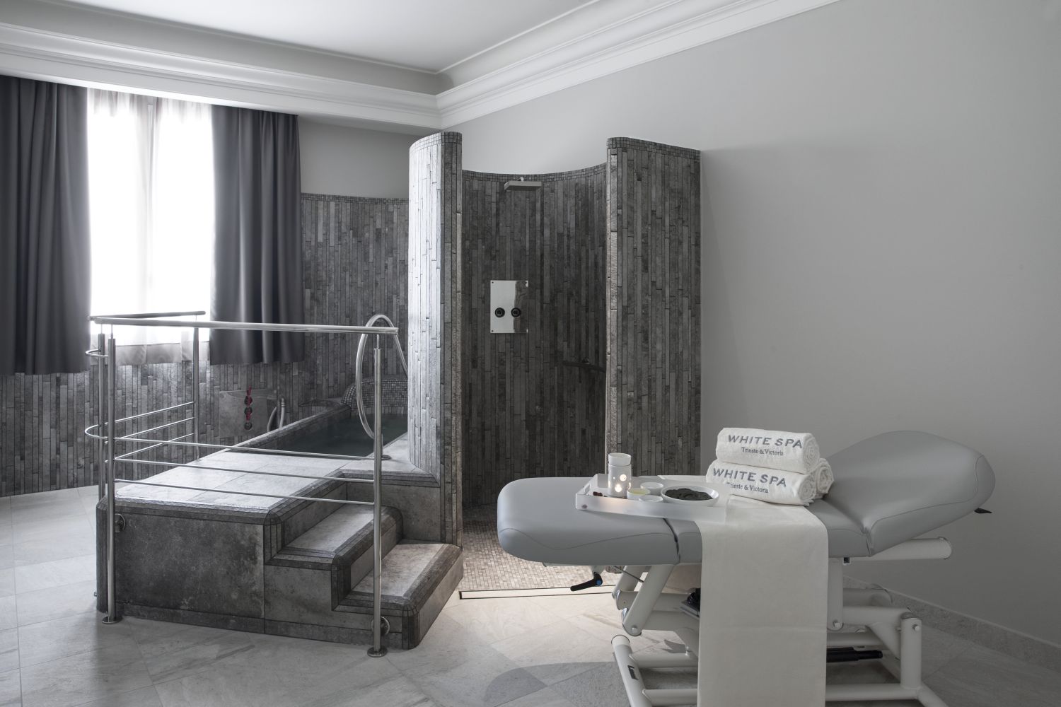 Fascino Belle Epoque e una spa termale d’avanguardia: è da questa unione che nasce il piacere di fermarsi al Grand Hotel Trieste & Victoria. Un privilegio sorprendente per i cercatori di esperienze memorabili, che vogliono vivere l’atmosfera autentica di un Grand Hotel nato nel 1912. Lo charme di un hotel che da più di 100 anni seduce i viaggiatori più raffinati del mondo. Pensiamo ogni menù e ogni piatto come il punto d’incontro tra gusto e benessere: un affascinante percorso di sapori che in ogni stagione dell’anno spazia dai sapori mediterranei alle influenze esotiche. L’acqua termale salso bromo iodica sgorga a 86°C da un pozzo all'interno del terreno dell’hotel, poi viene raffreddata prima di essere convogliata nelle 5 piscine. 3 esterne nel parco, 1 coperta nella zona relax della spa, 1 coperta per uso esclusivo e privato. Le piscine sono accessibili anche dall'interno, e alcune sono comunicanti fra di loro: questo le rende perfette in ogni stagione dell'anno. Entri in un mondo fatto di bianco, di purezza, di luce.Ti immergi nel benessere del fango termale, nella bellezza assoluta dei trattamenti estetici, nel relax totale dei sensi e del corpo che ottieni in uno spazio concepito per darti benessere in ogni sguardo.Sarà come muoversi all’interno di una nuvola.La purezza che stai cercando è nella White Spa.Un mondo incantato di benessere.Sistemazioni
