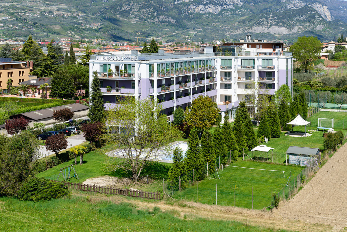 L’Ambassador Suite Hotel, 3 stelle con piscina si trova a Riva del Garda, una delle località più belle del Lago di Garda. Tra i servizi del hotel troviamo: Colazione a buffet ricca Piscina esterna (con piscina per bambini, non separata) Vasca idromassaggio e solarium Ampio giardino attrezzato con sdraio Bar Wi-Fi gratuito e parcheggio (anche garage) Campi sportivi (calcetto, beach volley) Ping-pong e area giochi per bambini Noleggio bici e deposito per attrezzature sportive (bici, surf, ecc.)Posizione