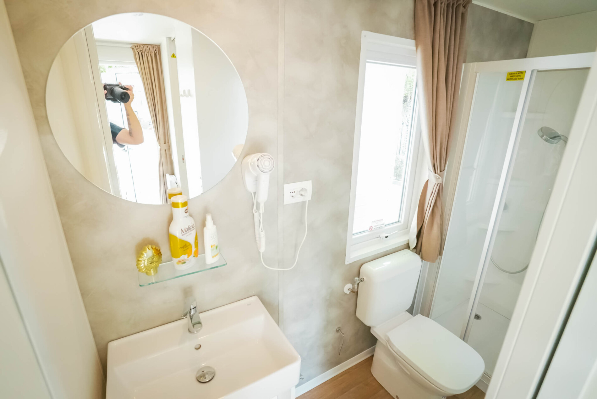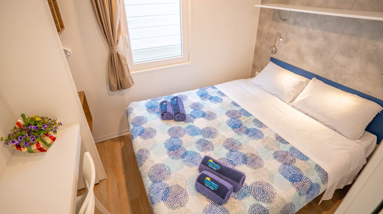 MH Happy RELAX: 24mq capienza 5 adulti e 1 bimbo di max 12 anni (dinette). 1 camera matrimoniale (190X140cm) + 1 camera 3 posti letti di cui 1 letto a castello (190x70) e un letto estraibile (170x63x10), bimbo in aggiunta sulla dinette. 1 bagno completo di doccia, lavandino, wc. Angolo cottura con frigorifero e piccolo congelatore, 4 fuochi a gas, microonde e lavandino