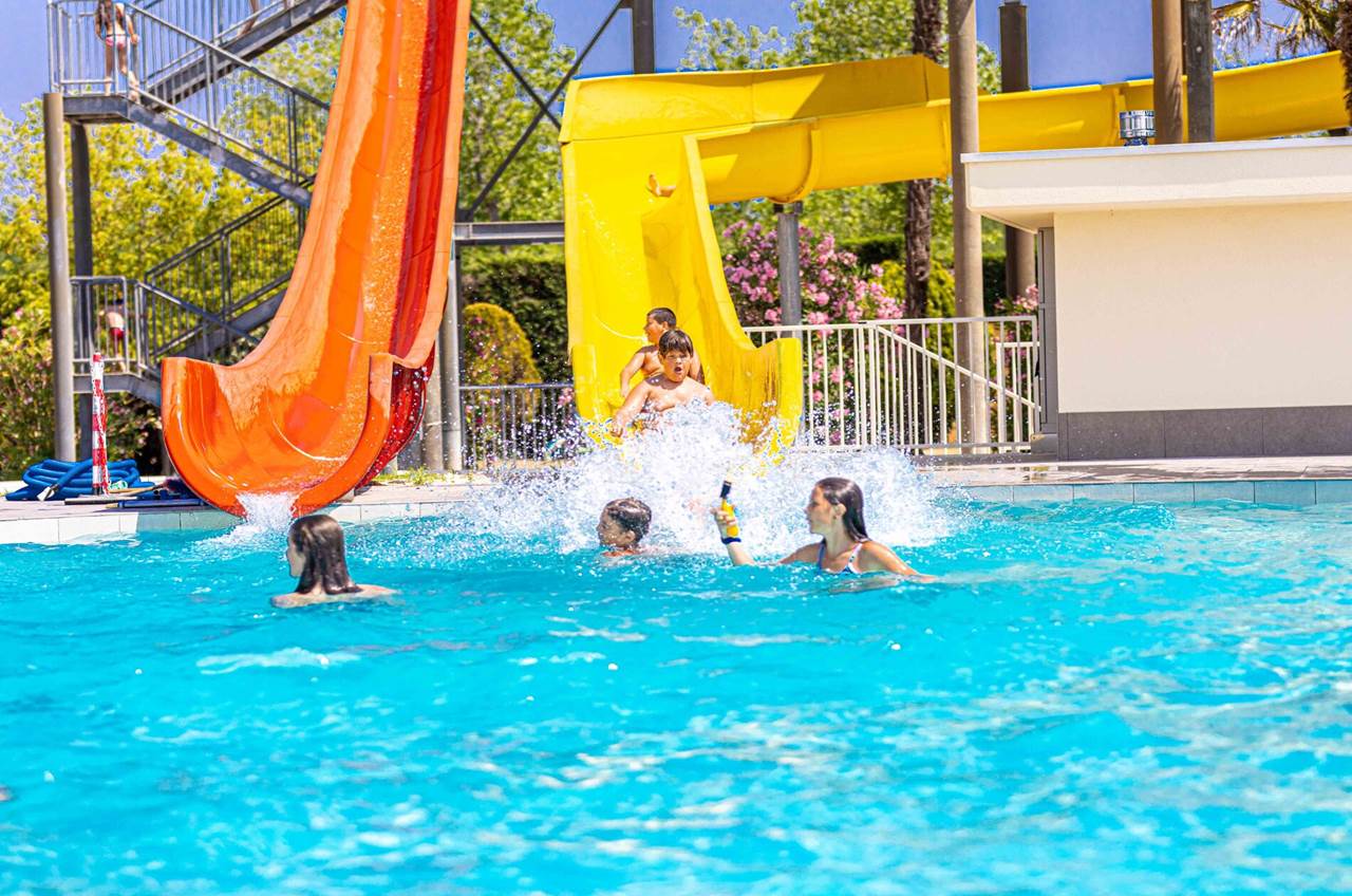 Disponibili 4 aree piscine adatte a grandi e piccole, con scivoli e giochi d'acqua.