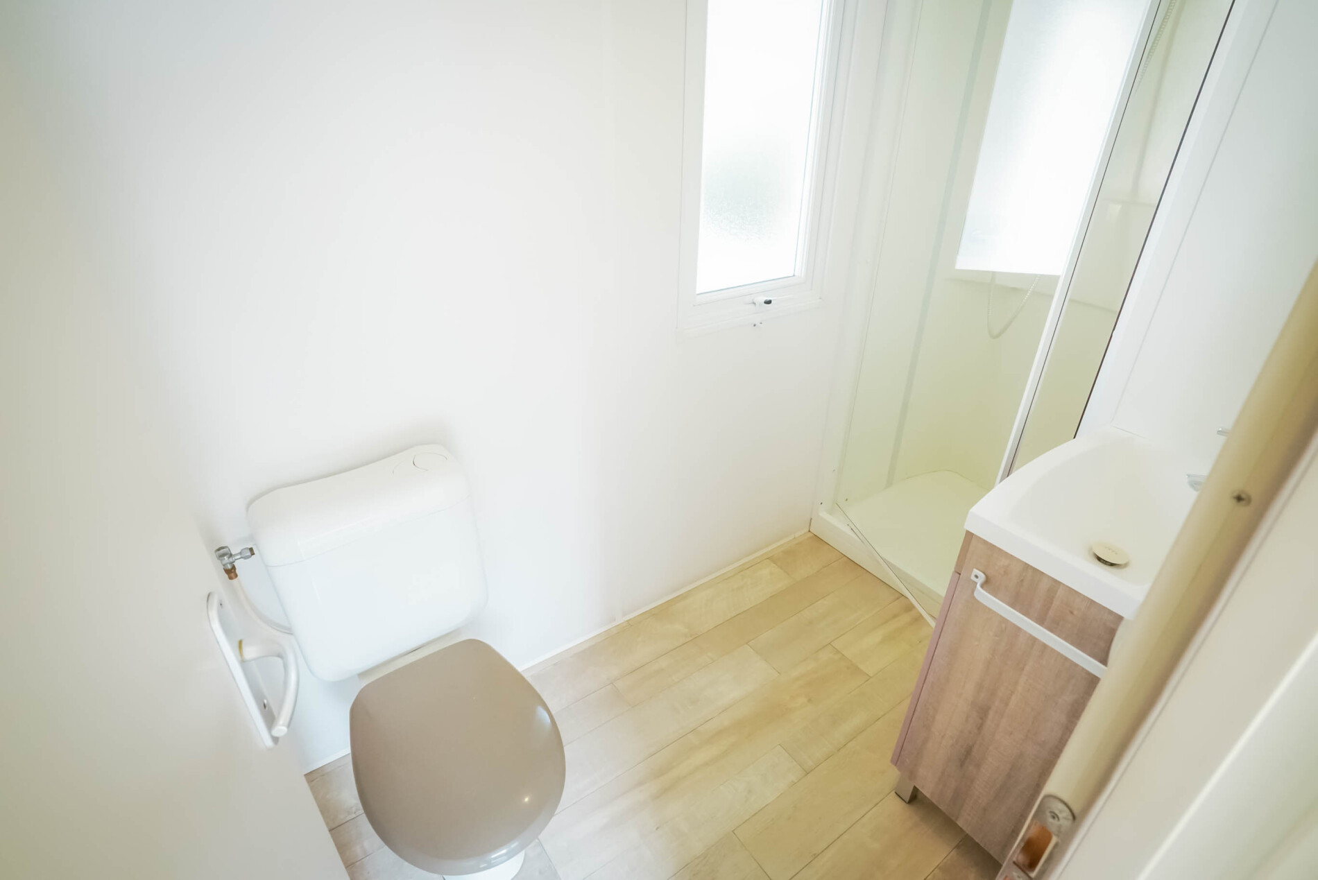 MH2 Mobile Home Happy Premium: 29mq capienza 6 adulti, 1 camera matrimoniale (190X140cm) + 2 camere con 2 letti separati (190X70cm). 1 bagno completo di doccia, lavandino, wc (in alcune unità wc separato), angolo cottura con frigorifero e piccolo congelatore, 4 fuochi a gas, microonde e lavandino