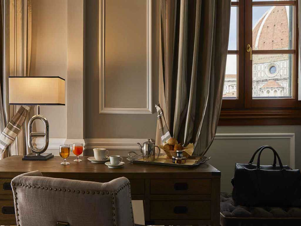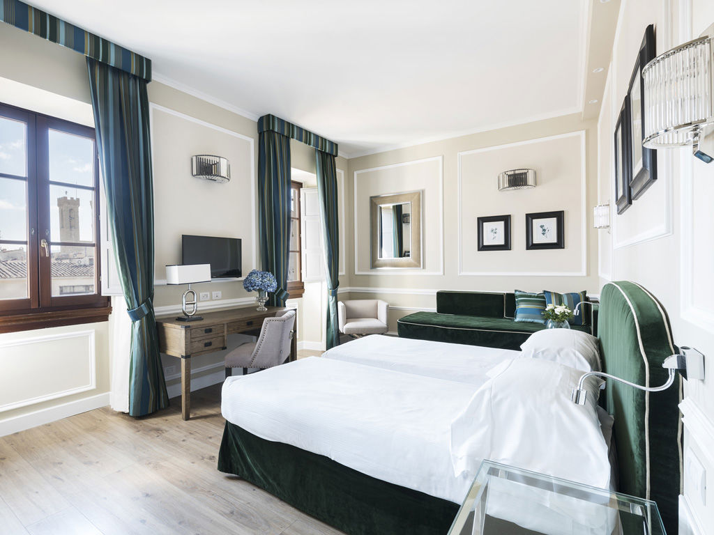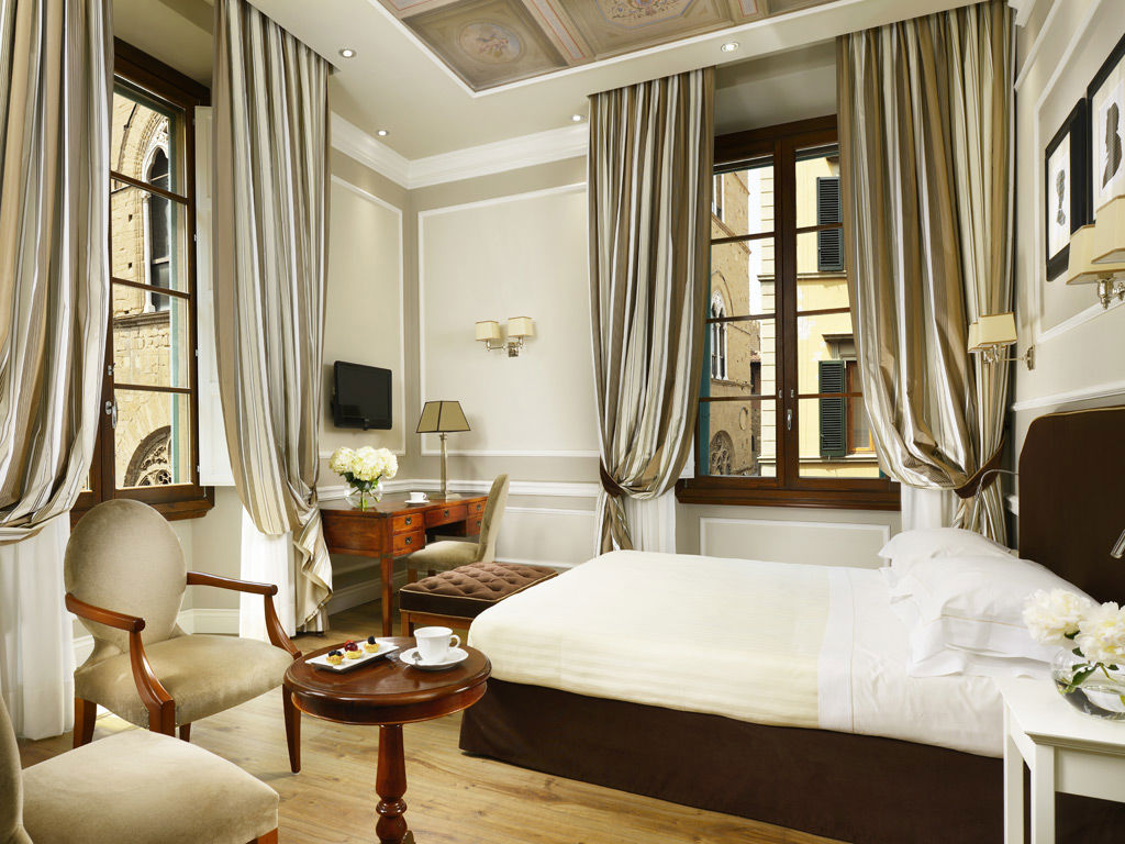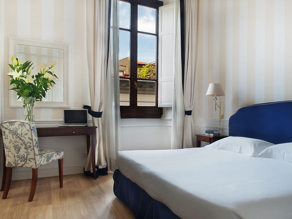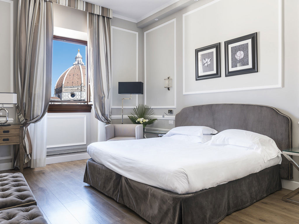 Le camere sono progettate per offrire relax e benessere. Eleganti, moderne, luminose e ben insonorizzate, con pavimenti in parquet, aria condizionata regolabile individualmente, TV a schermo piatto, minibar, bollitore per tè/caffè, prodotti da bagno di qualità, cassaforte e Wi-Fi gratuito. Alcune tipologie regalano viste mozzafiato: sulla celebre Cupola del Duomo, su Via dei Calzaiuoli, sul Bargello o su Orsanmichele; altre dispongono anche di terrazza o balcone per godere appieno del panorama urbano.La quota comprende