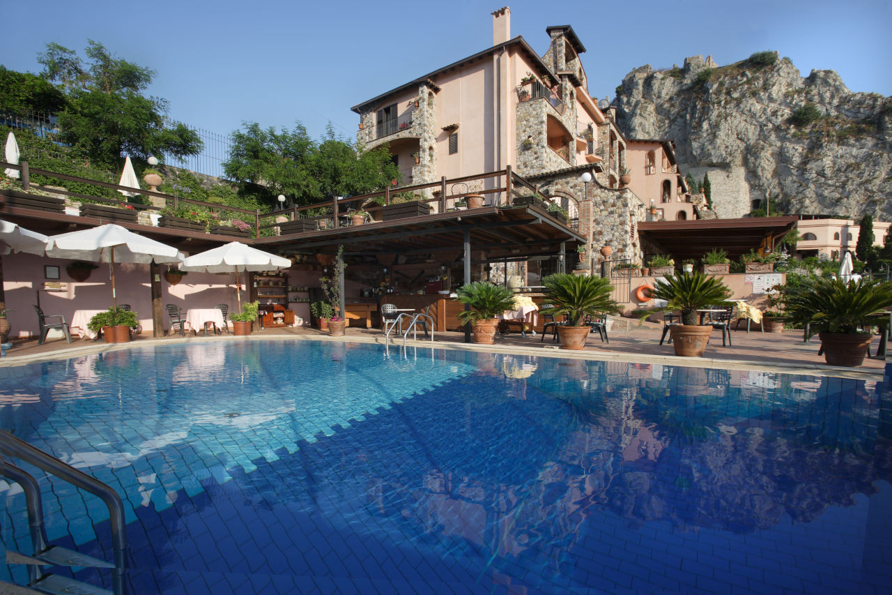 Nei mesi estivi si può pranzare, assaggiando delle prelibatezze, a bordo piscina dove ogni giorno viene allestito il Grill. L’hotel è dotato inoltre di una splendida Piscina con idromassaggio e terrazza panoramica, di sauna, di una mini piscina e di un solarium sul tetto con una vista mozzafiato che da sull’Etna. Ogni giorno c’è un servizio shuttle per Taormina centro. Gli ospiti possono inoltre usufruire di Sala Tv, servizio Internet Point e del servizio Wi-Fi gratuito in tutta la struttura, parcheggio e garage. Adiacente all’Hotel c’è una piccola stradina che conduce al borgo medioevale, Castelmola, dove si trovano piccole viuzze e piazzette, punti panoramici, con numerosi negozi, trattorie tipiche e wine bar e dove si può degustare nella panoramicissima terrazza dell’Antico Caffè San Giorgio il famoso Vino alla Mandorla. Per i più golosi consigliamo il rinomato ristorante "La Griglia" sul Corso Umberto nel centro di Taormina.