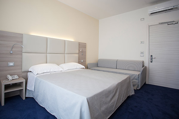 Le camere sono dotate di servizi privati, asciugacapelli, aria condizionata (gratuita), riscaldamento, cassaforte (gratuita), minibar (a pagamento), telefono, Tv e Wi-Fi (gratuito). Le Camere singole Basic e le Camere doppie/triple Basic sono di 19 mq, le Camere doppie/triple/quadruple Superior con terrazza sono di 24 mq, invece le Camere doppie/triple/quadruple Deluxe sono di 24 mq e dispongono di balcone.