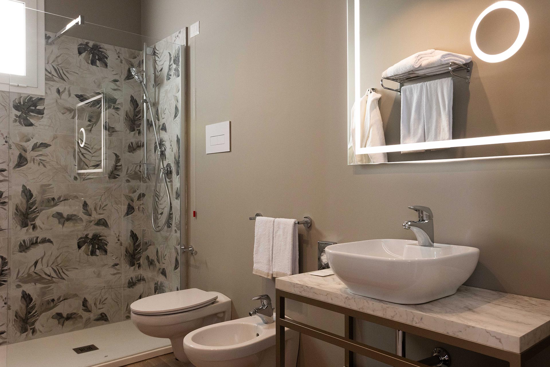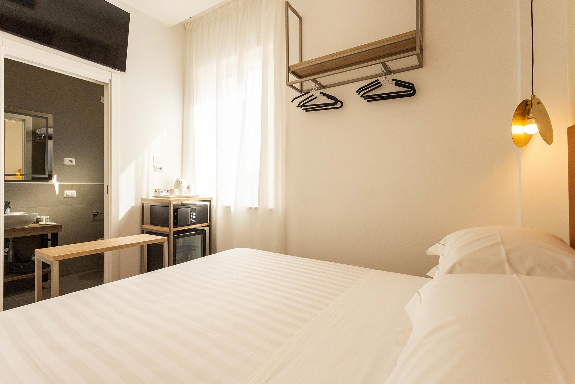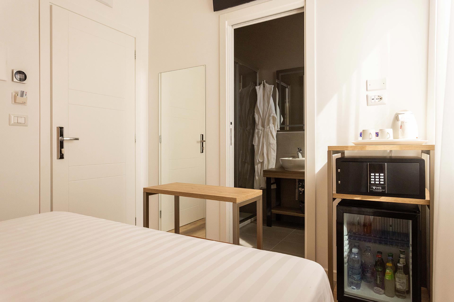 Le camere, sono arredate con sobrietà, classe ed eleganza, e sono dotate di: aria climatizzata centralizzata con pannello di controllo individuale a parete touch, cassaforte, minibar, smart tv hotel a led, asciugacapelli, free internet wireless, bollitore con selezione di tè e tisane. Tutte le camere sono non-smoking rooms