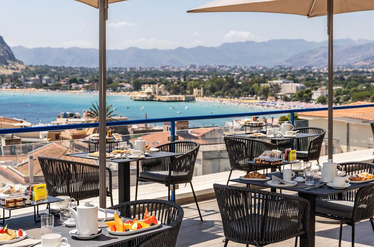 Ristorante & Bar: un ristorante/lounge bar su una terrazza roof top da circa 400 mq. con splendida vista su tutto il golfo di Mondello, in cui gustare ottimi aperitivi e/o cene gourmet. Il ristorante offre diverse piacevolezze della buona cucina Mediterranea abbinate a vini delle più prestigiose cantine Siciliane e non solo. Uno staff esperto è in grado di soddisfare qualsiasi aspettativa per una clientela esigente.
