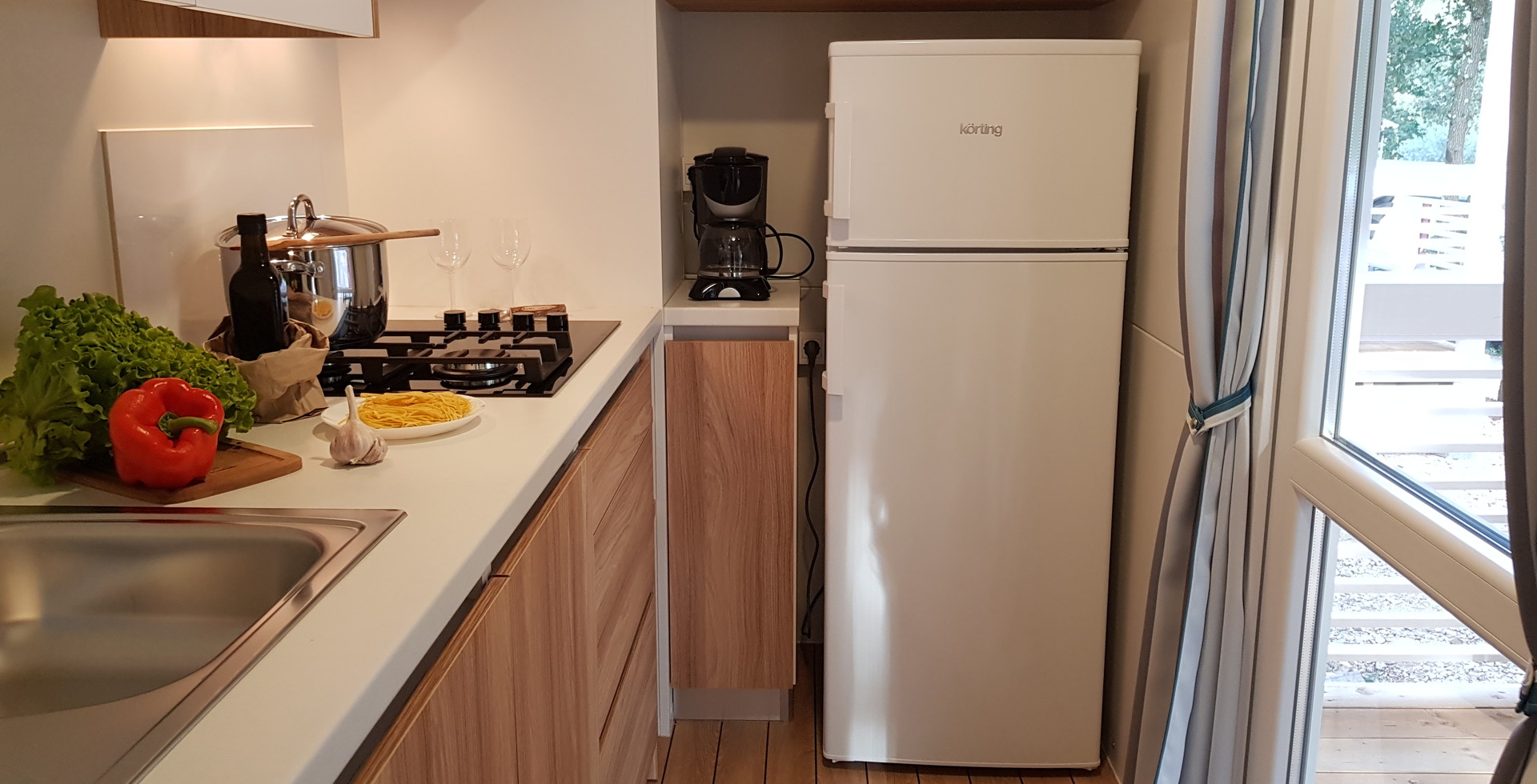 Non vengono forniti strofinacci da cucina, sapone o spugne per i piatti. Lenzuola e asciugamani non sono forniti nella casa mobile e possono essere noleggiati all'arrivo. Non è consentito fumare nelle case mobili.Note