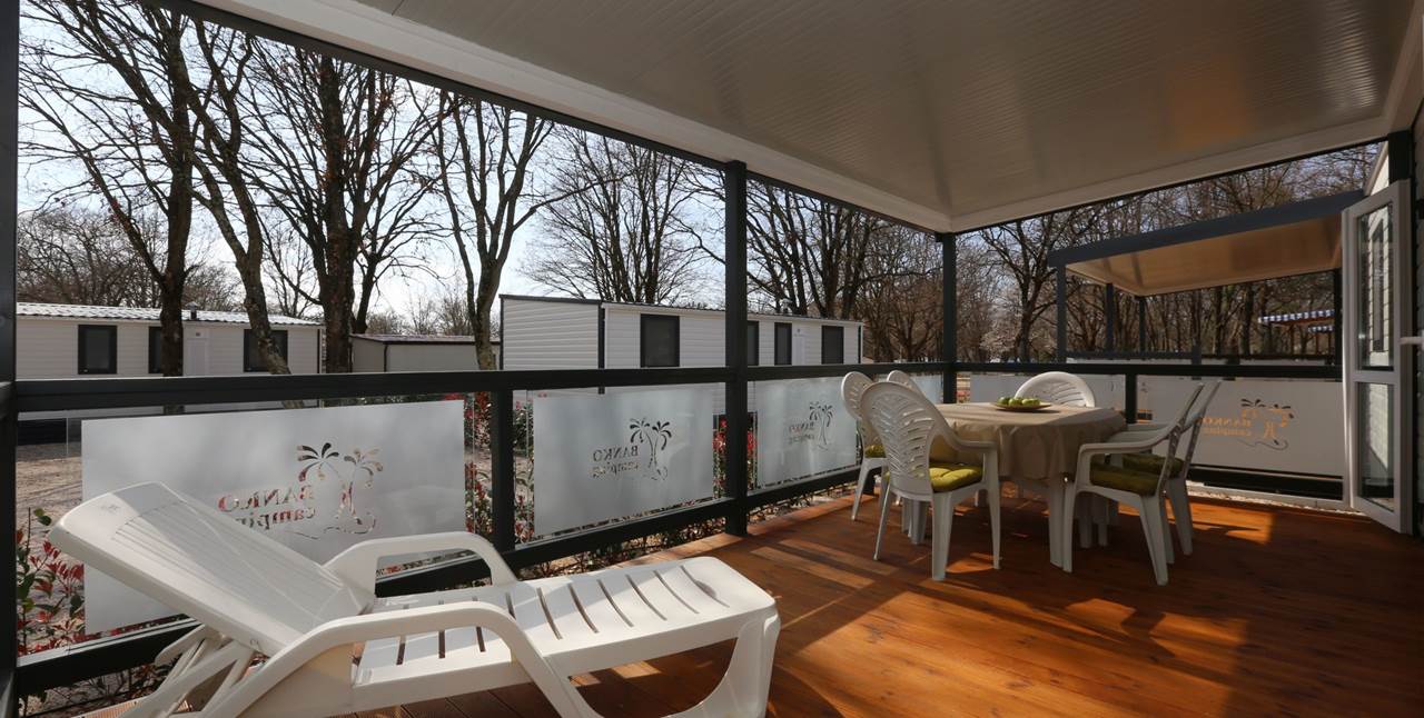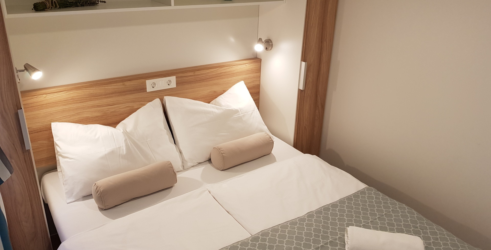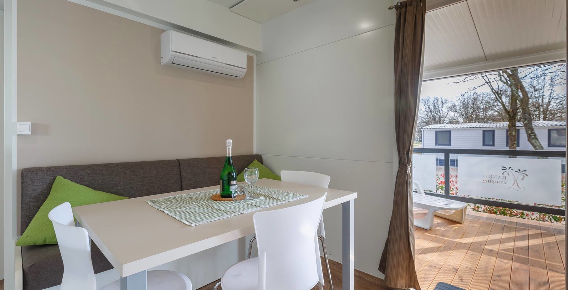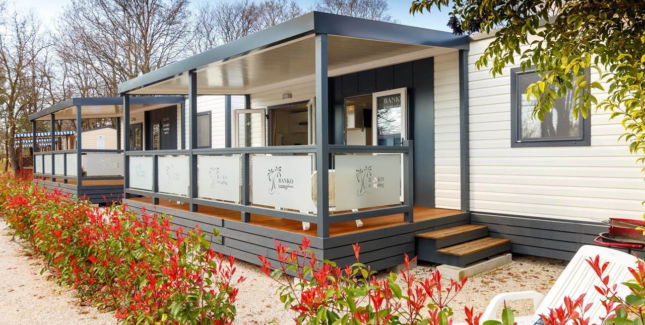 Le case mobili si trovano nella zona K del campeggio Bijela Uvala, più volte premiato come uno dei migliori campeggi nella categoria 4 stelle. Il campeggio offre 4 piscine, un minimarket e un supermercato, campi da tennis, campi da calcio, campi da beach volley, equitazione, animazione per bambini, 5 ristoranti, bar sulla spiaggia, due panetterie, bancarelle di frutta e verdura e numerosi altri servizi che garantiscono una spensierata vacanza estiva.Sistemazioni