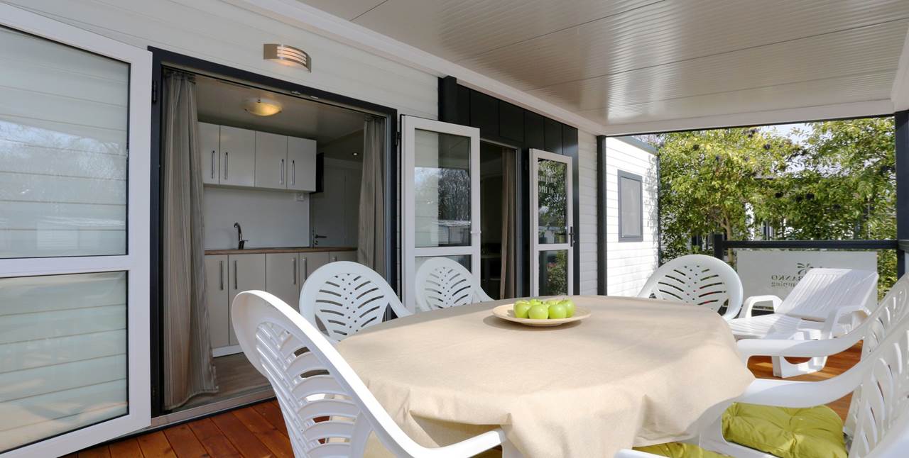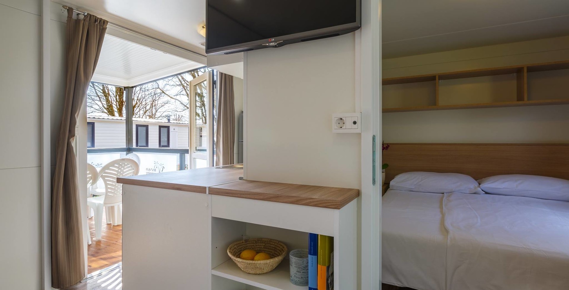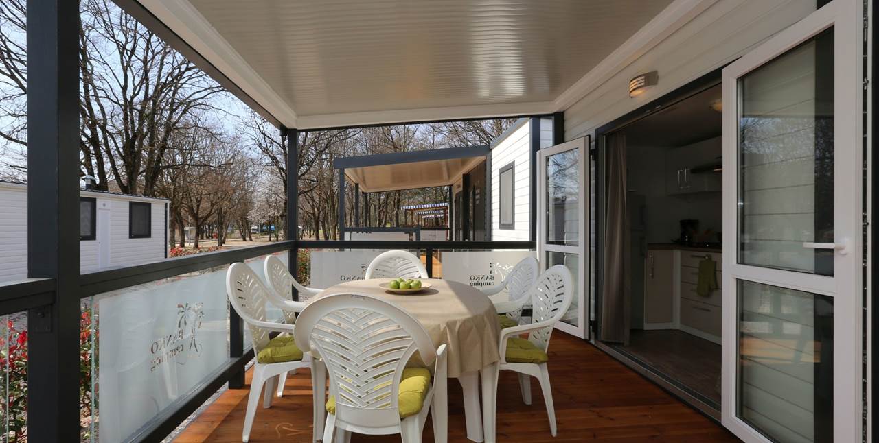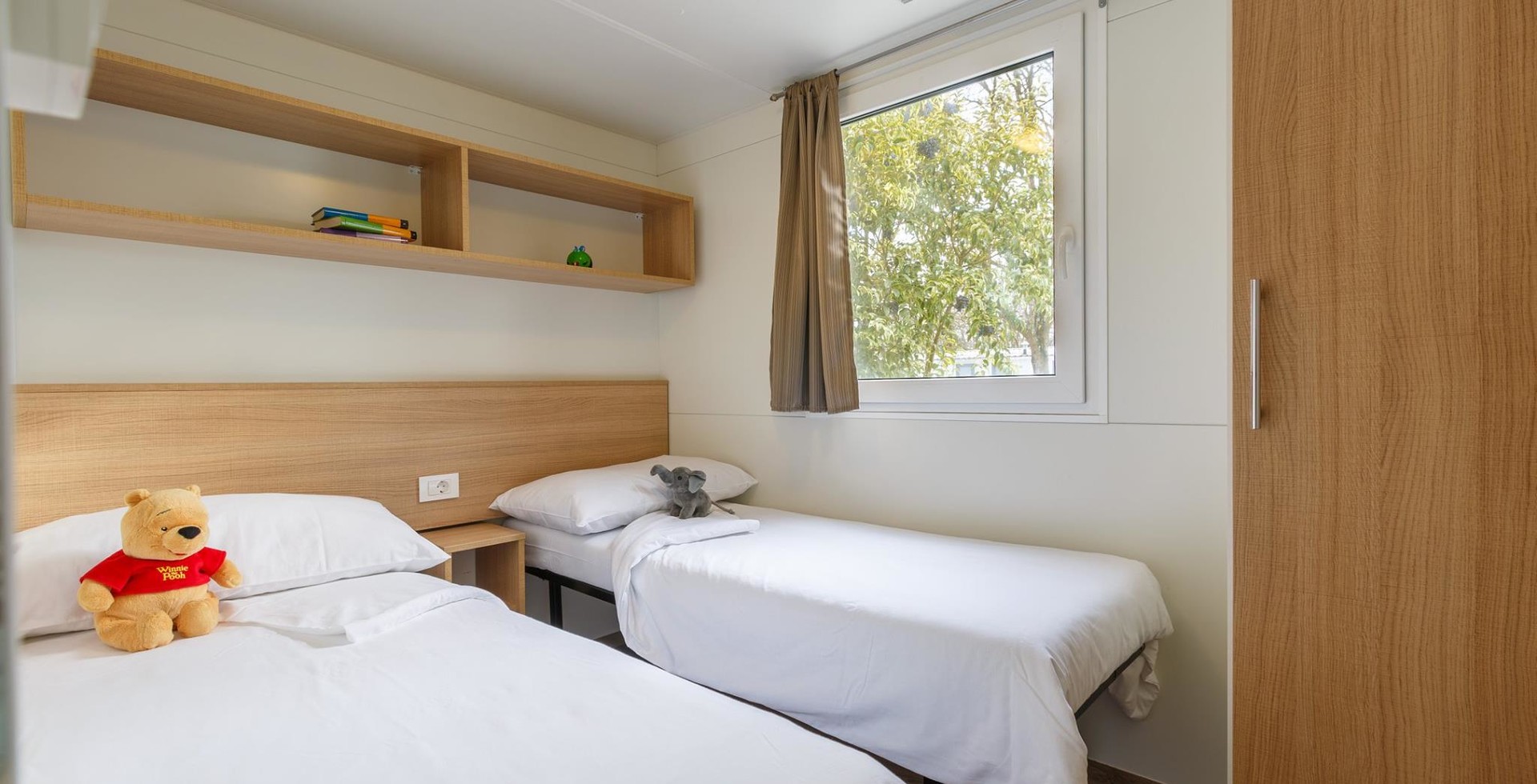 Le case mobili si trovano nella zona K del campeggio Bijela Uvala, più volte premiato come uno dei migliori campeggi nella categoria 4 stelle. Il campeggio offre 4 piscine, un minimarket e un supermercato, campi da tennis, campi da calcio, campi da beach volley, equitazione, animazione per bambini, 5 ristoranti, bar sulla spiaggia, due panetterie, bancarelle di frutta e verdura e numerosi altri servizi che garantiscono una spensierata vacanza estiva.Sistemazioni