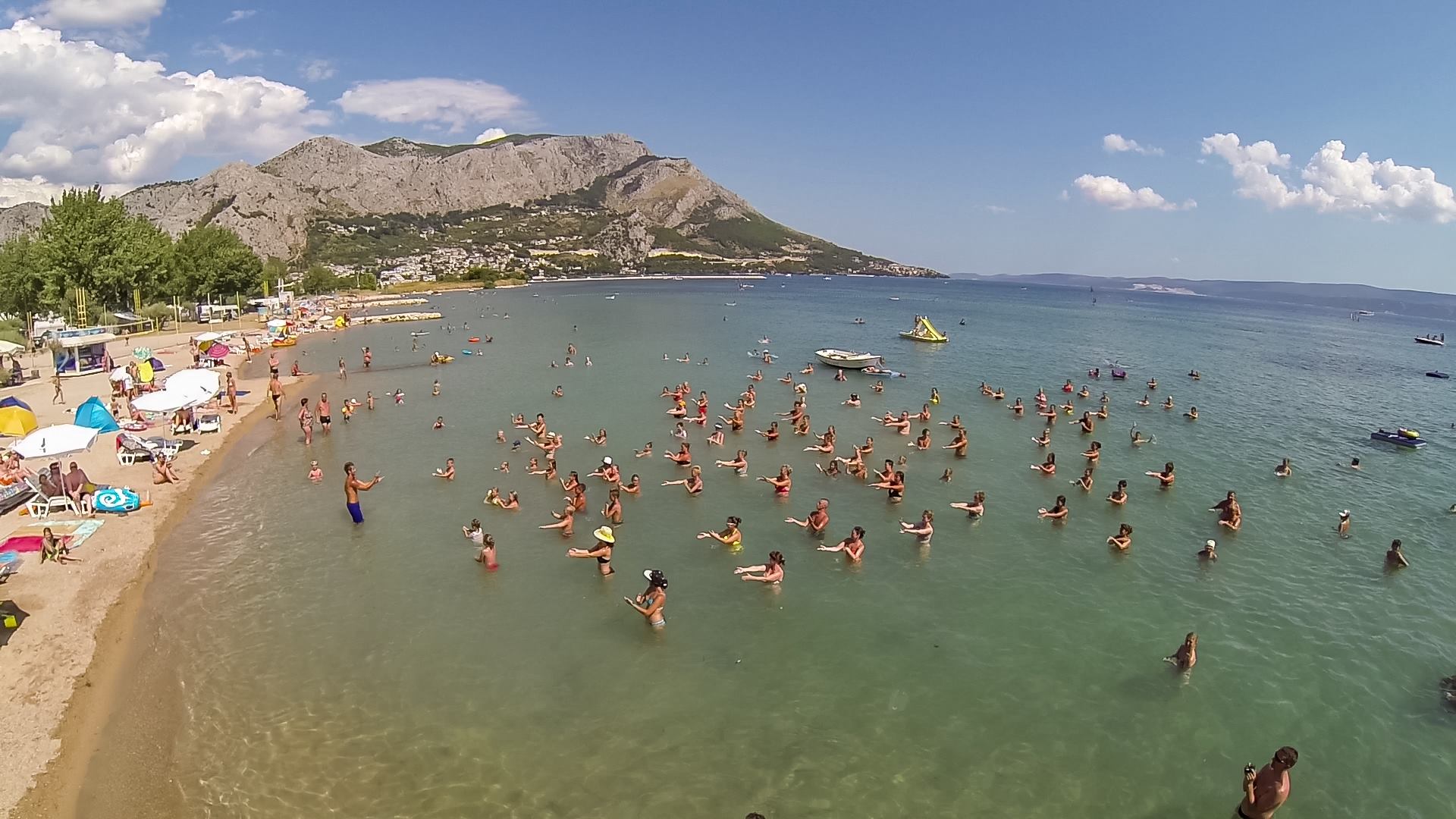 Una delle poche spiagge di sabbia in Dalmazia si trova all'interno di campeggio Galeb. Omis è una meta estiva preferita di molti ospiti a causa di spiagge sabbiose, piacevoli per i piedi e adatti ai bambini. La grande spiaggia di sabbia si estende lungo l'intero campeggio Galeb, ed è particolarmente adatto per famiglie con bambini piccoli a causa del mare molto basso.Amici a 4 Zampe