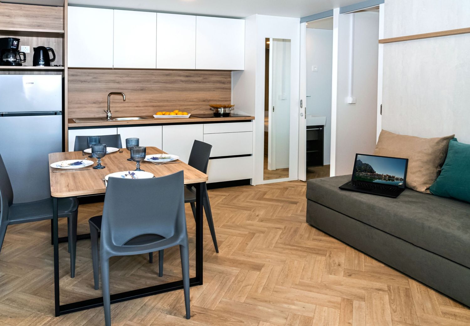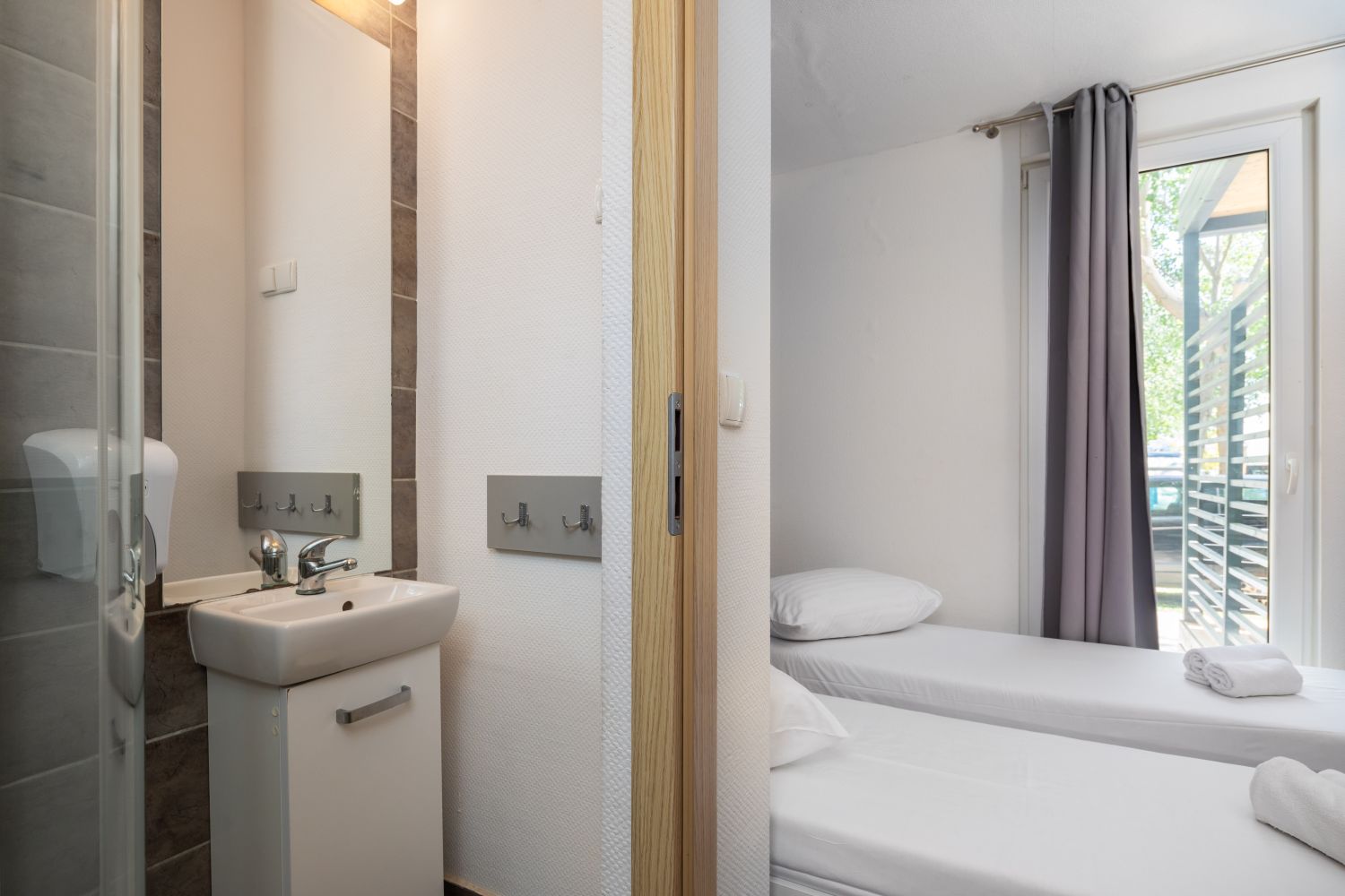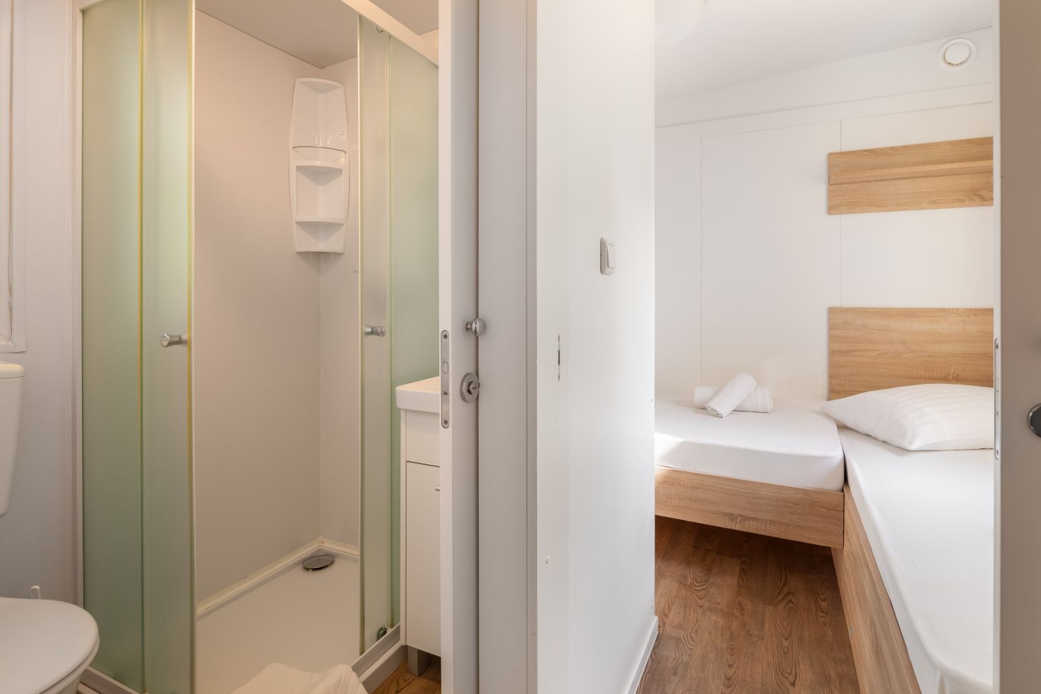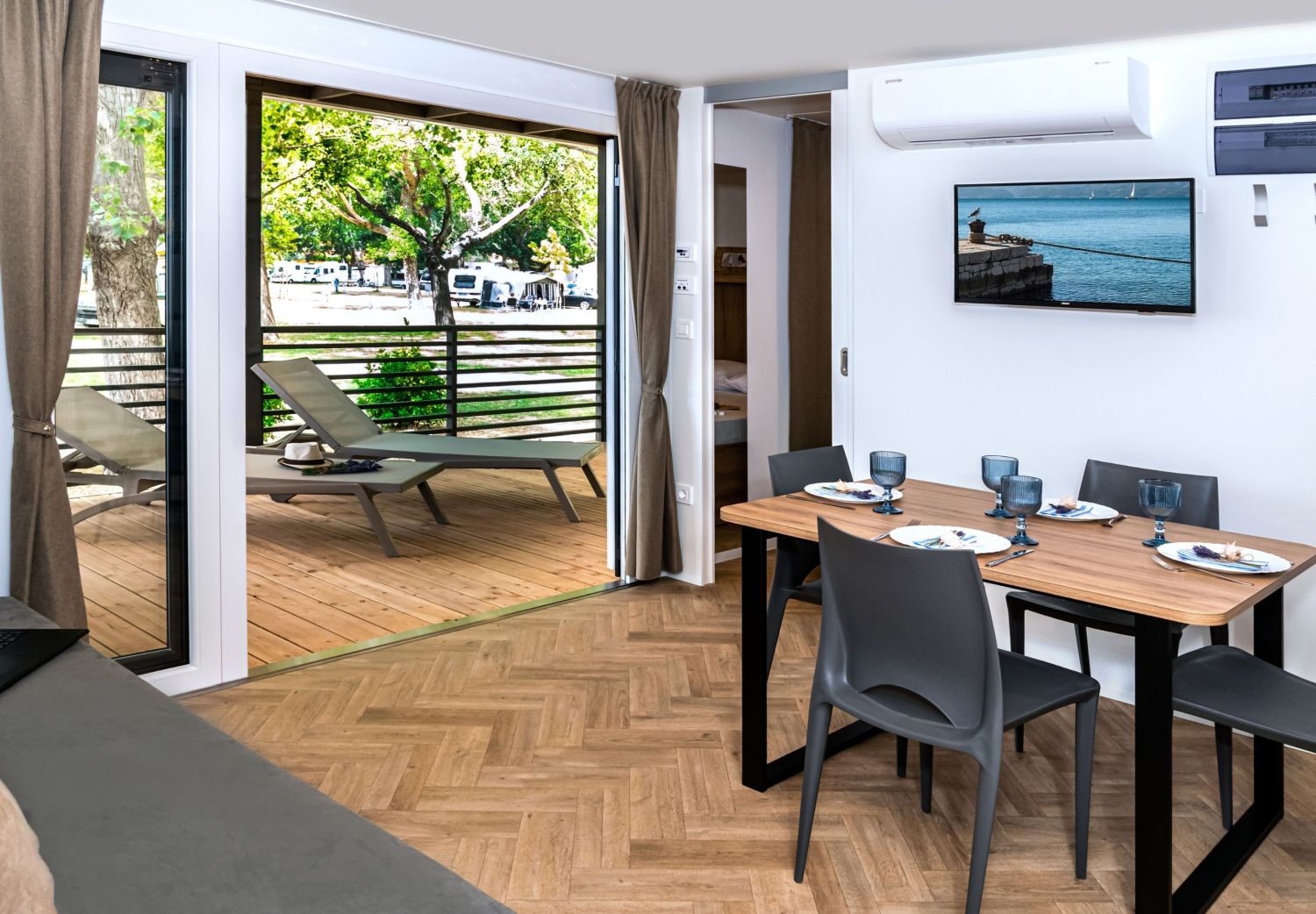 Mobilhome Relax 4+2: 2 camere da letto, cucina (piano cottura, frigorifero, macchina per il caffè, utensili da cucina), soggiorno (soggiorno (l'angolo del soggiorno può essere convertito in un letto aggiuntivo per due persone), bagno, terrazza coperta con mobili da esterno. Le mobilhome sono dotate di aria condizionata e TV satellitare. Mobilhome Relax 5+1: 3 camere da letto, cucina moderna (lavastoviglie, piano cottura a gas, forno a microonde, frigorifero, macchina per il caffè, bollitore, ferro da stiro, asse da stiro e stoviglie), soggiorno (divano a due posti nel soggiorno può essere convertito in un letto aggiuntivo per una persona), 2 bagni con pavimento e pareti piastrellati, termosifone, terrazza coperta. Le mobilhome sono dotate di aria condizionata e TV satellitare. Mobilhome Relax 6+2: 3 camere da letto, cucina moderna (lavastoviglie, piano cottura in vetroceramica, forno a microonde, frigorifero e utensili da cucina), soggiorno (l'angolo del soggiorno può essere convertito in un letto aggiuntivo per 2 persone), 2 bagni con pavimento e pareti in piastrelle di ceramica, terrazza coperta. Le case mobili sono dotate di aria condizionata e TV satellitare. Mobilhome Adria Superior 4+1: 2 camere da letto (una camera con letto matrimoniale da 160x200 cm; l'altra camera con due letti singoli da 80x200 cm), cucina moderna completamente attrezzata (piano cottura a gas su piattaforma in vetroceramica con 4 fuochi, cappa aspirante integrata, lavello in acciaio inox con scolapiatti, frigorifero indipendente con congelatore e utensili da cucina), soggiorno (divano adatto per un bambino, set da pranzo), 2 bagni (doccia, WC, lavandino). Le case mobili sono dotate di aria condizionata e TV satellitare.Spiaggia