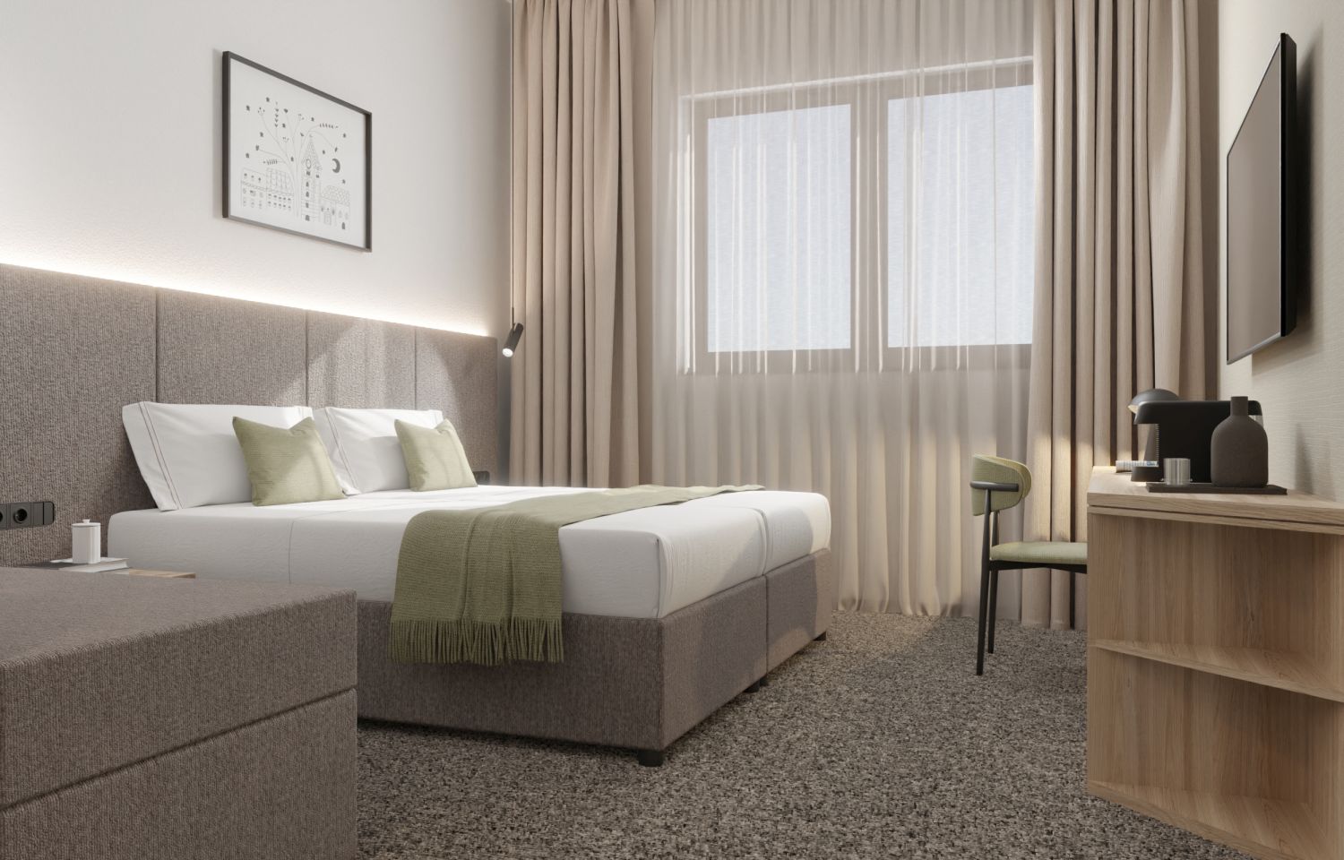 L'Hotel Siscia, un nuovo gioiello a 4 stelle nel cuore di Sisak, offre ai suoi ospiti comfort moderni e un servizio impeccabile. L'ampia e moderna hall ospita una reception che vi accoglierà calorosamente e vi fornirà assistenza professionale durante tutto il soggiorno. Gli ospiti possono gustare una varietà di prelibatezze gastronomiche nel ristorante dell'hotel, che offre opzioni a buffet e à la carte, nonché rilassarsi nell'atmosfera dell'elegante bar con un'ampia terrazza. Per gli ospiti in viaggio d'affari, l'hotel dispone di una sala riunioni e di una sala conferenze modernamente attrezzata, ideale per presentazioni, seminari e vari eventi aziendali. L'Hotel Siscia è stato creato per coniugare comfort, funzionalità e design contemporaneo: tutto ciò che serve per un piacevole soggiorno a Sisak.Sistemazioni