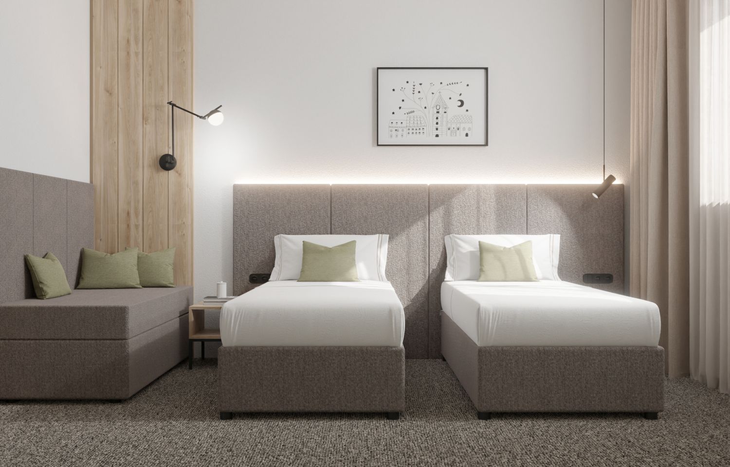 L'hotel dispone di 80 camere matrimoniali superior, 3 junior suite e 1 suite deluxe. Le camere offrono un soggiorno confortevole in uno spazio moderno e funzionale. Tutte sono dotate di aria condizionata, TV satellitare, minibar e Wi-Fi gratuito, mentre il bagno con doccia offre tutto il necessario per un soggiorno piacevole e rilassante. Camera doppia superior con letti singoli o matrimoniali: letti standard (90x200 cm che possono essere uniti per formare un comodo letto matrimoniale). 21-28 mq. Camera familiare superior: letti singoli (90x200 cm, unibili per formare un comodo letto matrimoniale) e divano letto aggiuntivo (90x200 cm). 21-28 mq. Junior Suite: letti singoli (90x200 cm unibili a formare un letto matrimoniale), un divano letto (90x200 cm) e un altro divano letto (160x200 cm), che consentono una configurazione flessibile per il pernottamento. La scelta ideale per un soggiorno confortevole per famiglie numerose o gruppi fino a cinque persone. 35 mq. Suite Deluxe: letti singoli (90x200 cm, unibili a formare un letto matrimoniale) e divano letto (160x200 cm) per due persone aggiuntive. 40 mq.Amici a 4 Zampe