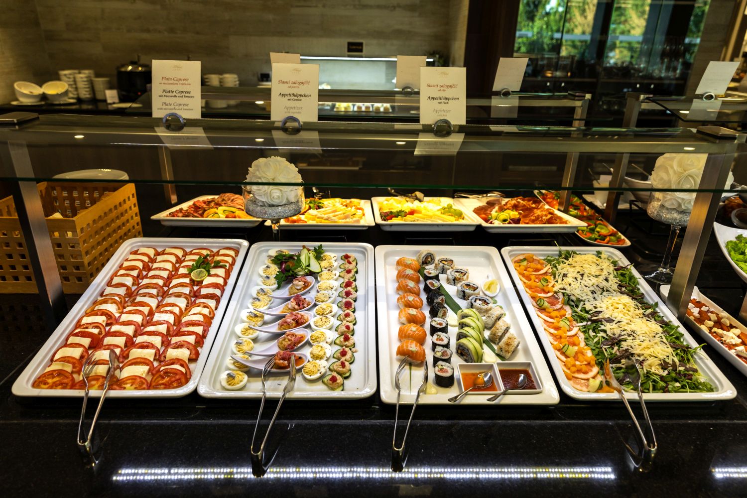 Le camere Economy sono situate nel primo edificio dell'hotel, al 1° o 2° piano, hanno una superficie di 32 m² e dispongono di un balcone che offre una vista parziale sul mare. Le camere Superior sono situate nel primo edificio dell'hotel, dal 3° al 5° piano, hanno una superficie di 32 m² e sono dotate di balcone con vista parziale sul mare. Le camere Premium sono moderne e dotate di balcone con vista sulla piscina esterna e sul Mar Adriatico. Dispongono di un letto king-size o di due letti singoli, con la possibilità di aggiungere un letto supplementare o una culla. Le camere Deluxe sono situate nella parte più alta dell'hotel e offrono una delle viste più belle sul Mar Adriatico e sulle isole.Amici a 4 Zampe