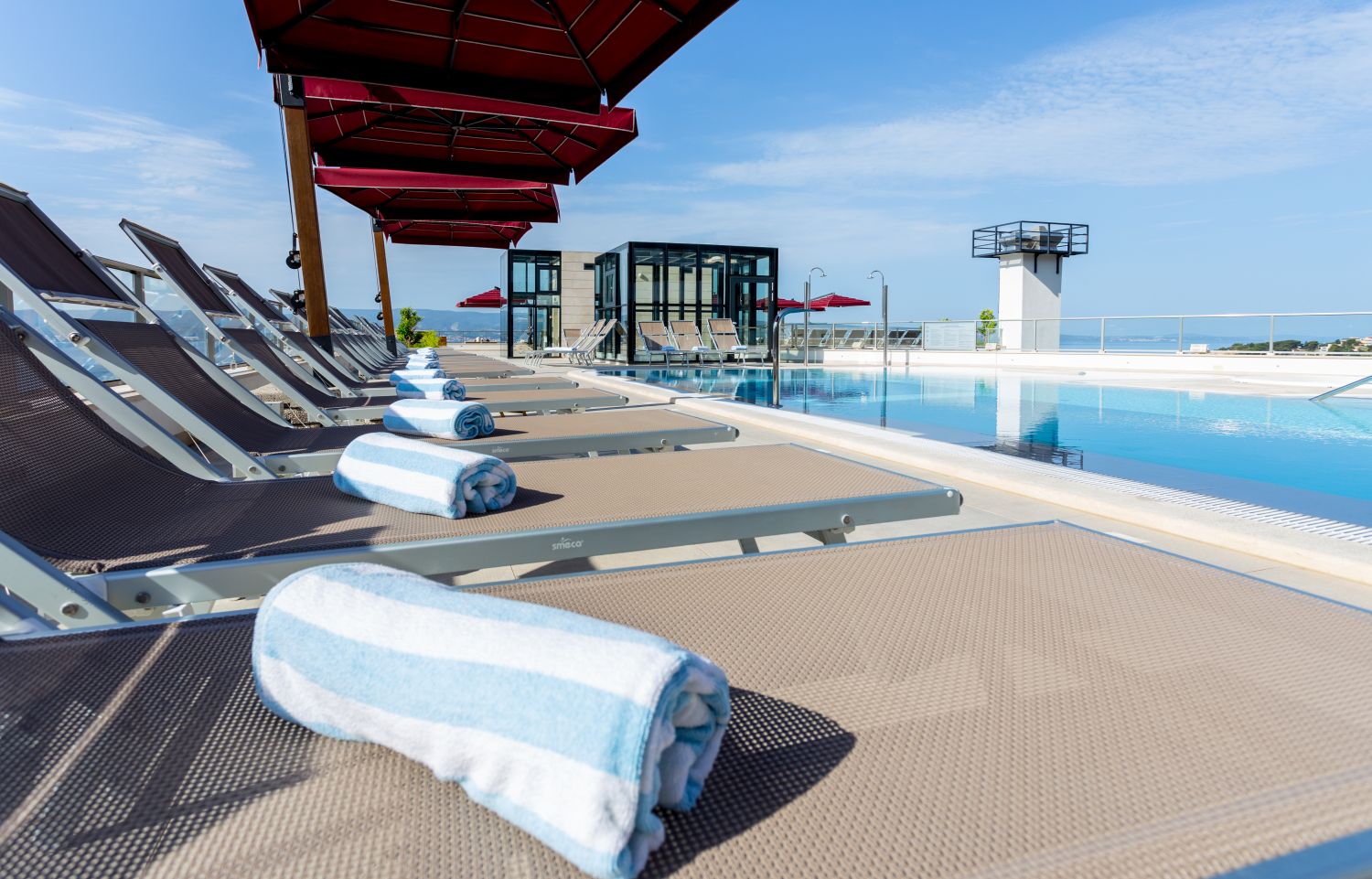 Grazie alla sua posizione unica, l'Hotel Plaža Duce è il luogo ideale per una vacanza rilassante, pur rimanendo collegato a tutte le principali destinazioni. 103 camere, con il loro design, i mobili raffinati e i colori accuratamente selezionati, offrono un soggiorno unico con una delle viste più belle sul mare Adriatico e sull'isola di Brac. Il ristorante e bar a bordo piscina "Sunset", il centro benessere e spa Bai Bien, il bar sulla spiaggia "Plaža", il personale professionale e cordiale, le camere moderne, la piscina interna ed esterna sono solo una parte dell'offerta dell'hotel Plaža Duce.Sistemazioni