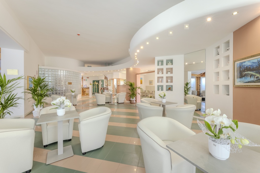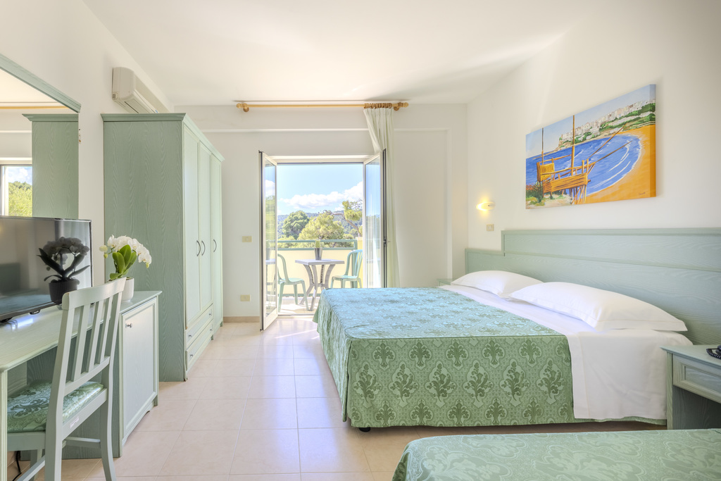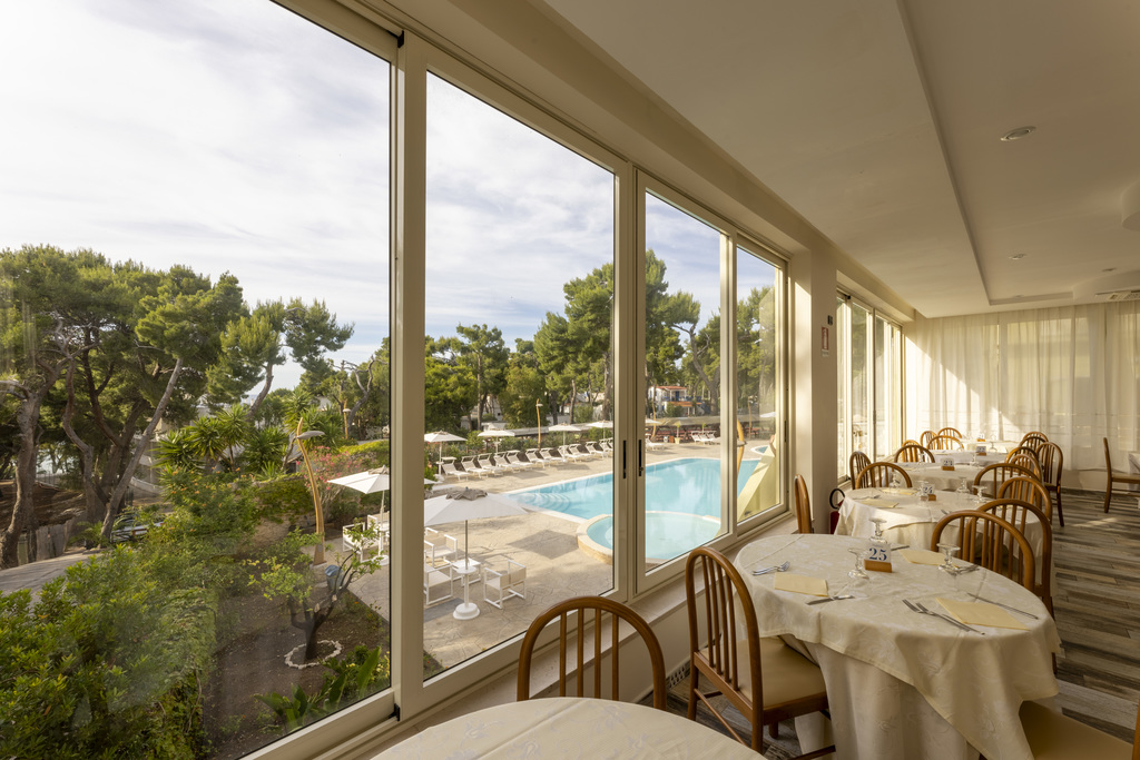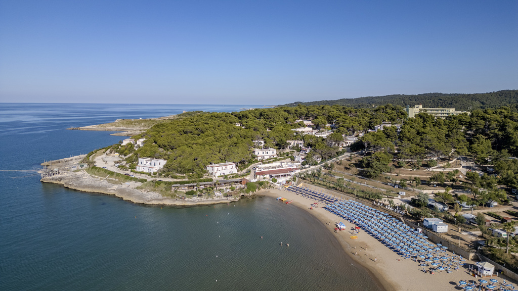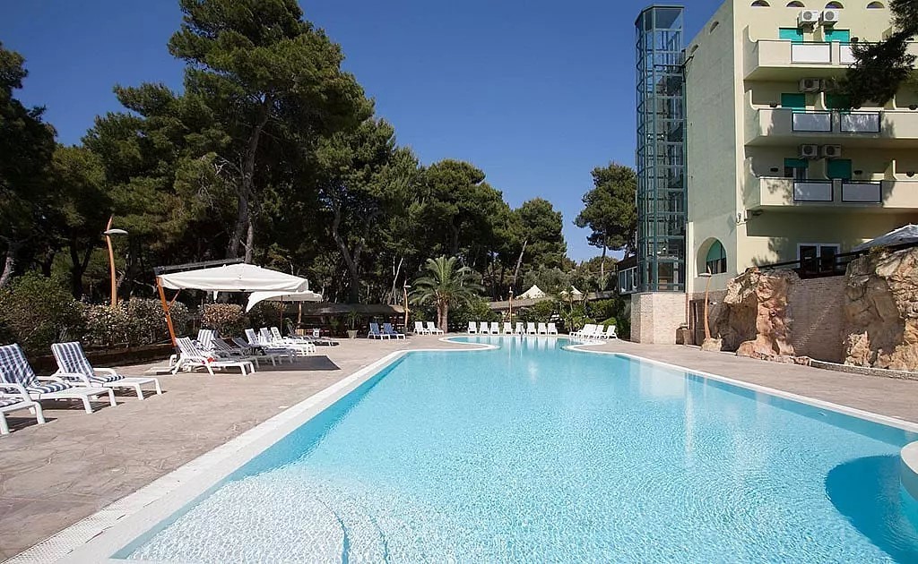Introduzione: Situato a metà strada fra Peschici e Viste, in posizione dominante sulla baia di Manacore, è immerso nel verde della pineta ed ha accesso diretto alla spiaggia di sabbia finissima delimitata da scogli, raggiungibile attraverso una passeggiata di ca 150 m.CARATTERISTICHE: completamente climatizzato, dispone di ampia e luminosa reception, ascensore, sala ristorante, parco giochi per bambini, piscina all'aperto attrezzata con ombrelloni e lettini, piccola area wellness a pagamento. Parcheggio interno gratuito non custodito.RISTORAZIONE: prima colazione continentale a buffet, pranzo e cena con vasta scelta tra primi e secondi, impiattati e serviti direttamente dal personale. Buffet di contorni, frutta e dessert. Menù differenziati per infant e bambini a richiesta.CAMERE: tutte dotate di balcone (vista mare con supplemento su richiesta, previa disponibilità), aria condizionata, mini frigo, cassaforte, TV con Sky, telefono e servizi privati con doccia e asciugacapelli. Camere quadruple con letto a castello. Family 5 posti: camera doppia e camera tripla comunicanti. Camere vista mare su richiesta previa disponibilità.ALL INCLUSIVE: comprende le bevande ai pasti alla spina (acqua, vino, bibite e birra); Open bar nella hall (09:30-15:00 e 16:30-23:30) con consumo illimitato di bibite e succhi alla spina, caffè, cappuccino, the, camomilla, gelati; Open bar in spiaggia (09:00-13:00 e 15:00-19:00, dal 24.05 al 19.09) con consumo illimitato di acqua, bibite e succhi alla spina; servizio spiaggia (1 ombrellone e 2 lettini a camera, dalla terza fila).SERVIZI: Wi-Fi nella hall e in piscina. Animazione diurna in spiaggia o piscina, intrattenimento serale con spettacoli in area dedicata, Miniclub e Junior Club, piano bar o dj set. Cena tipica settimanale "We are in Puglia” (14/06-06/09) con degustazione di prodotti tipici a bordo piscina, musica dal vivo o dj set. Pet service: kit di benvenuto, area dedicata in zona ristorante (veranda), area sgambamento e pet shower. In spiaggia privata (Tamerici Beach, a 150 m): area riservata per cani su prenotazione a pagamento, servizio navetta in golf car 14 posti da/per la spiaggia ad orari prestabiliti.