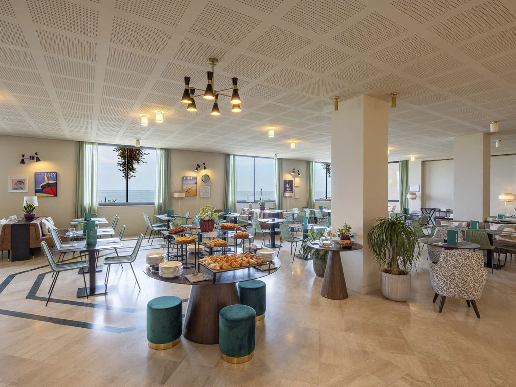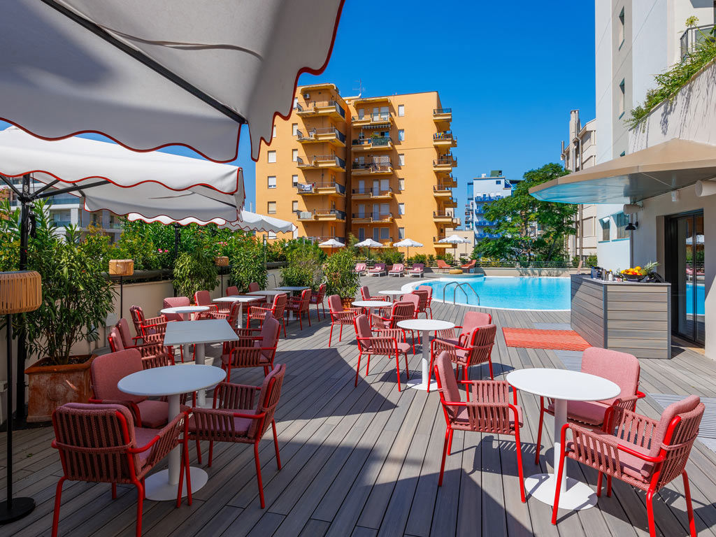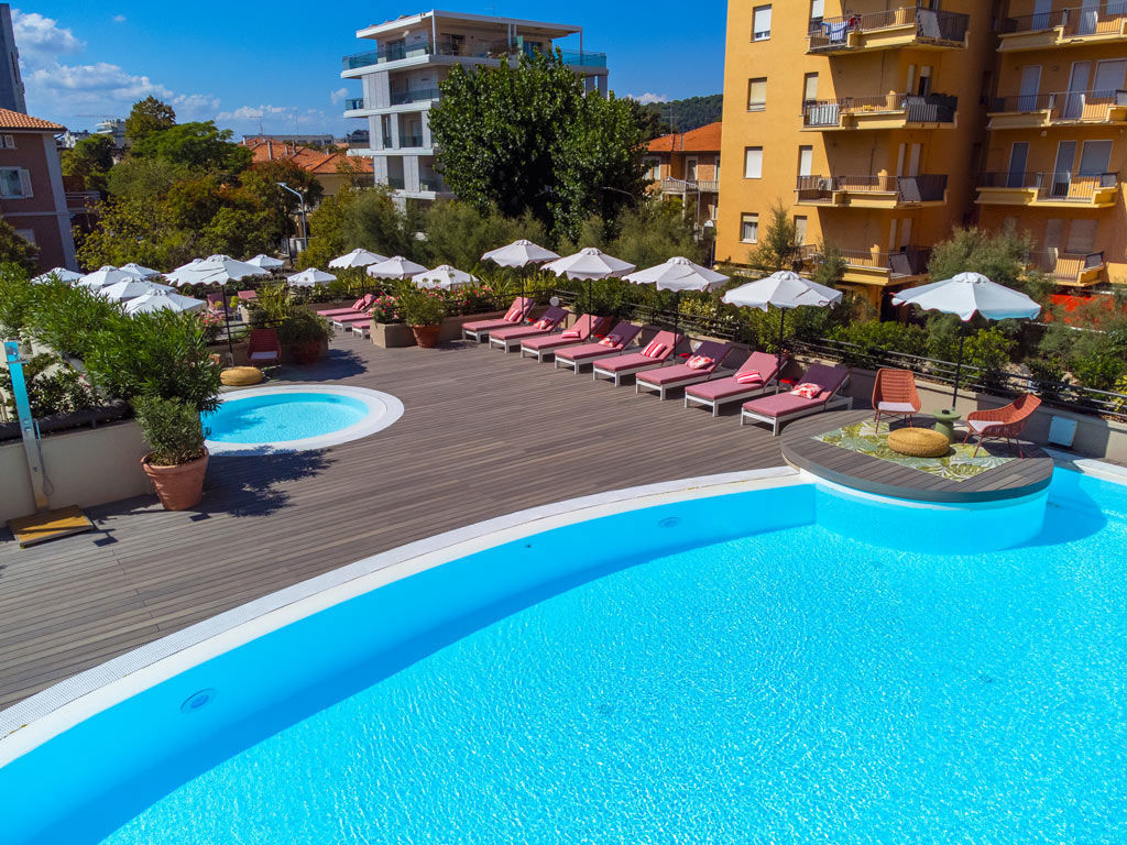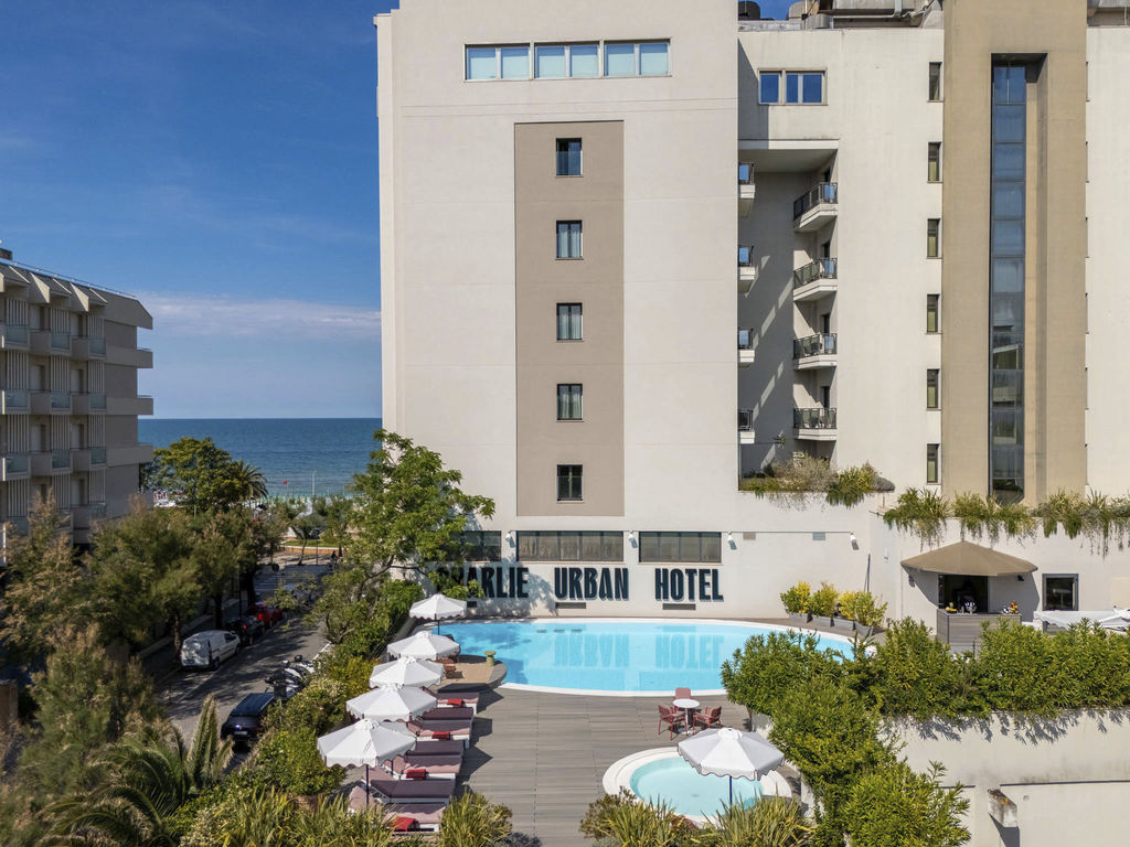 Introduzione: Situato in ottima posizione fronte mare direttamente sulla spiaggia, a pochi passi dal centro di Pesaro.CARATTERISTICHE: ristorante e sala colazioni, lounge bar "Roof 281" al sesto piano, pool bar, piscina nel piano ammezzato, zona solarium con lettini e ombrelloni, piscina separata per bambini, palestra. Parcheggio interno su prenotazione a pagamento (posti limitati). Animali ammessi con supplemento.RISTORAZIONE: ricca colazione a buffet dolce e salata, cena servita al tavolo con sceltra tra 3 primi e secondi e buffet di antipasti, contorni e dolci. A disposizione alimenti base per intolleranze e allergie alimentari.CAMERE: The Wind - singola: con balcone vista città, letto alla francese, armadiatura a vista e bagno con doccia e asciugacapelli, dotate di aria condizionata, Wi-fi, smart TV, minibar, cassetta di sicurezza, ciabattine e linea di cortesia. Roosvelt Field - doppia classica: con vista città, letto matrimoniale o due twin, armadiatura a vista e bagno con doccia e asciugacapelli, dotate di aria condizionata, Wi-fi, smart TV, minibar, cassetta di sicurezza, ciabattine e linea di cortesia. Paris - doppia superior: con balcone vista mare, letto matrimoniale e bagno con doccia e asciugacapelli, dotate di aria condizionata, Wi-fi, smart TV, cassetta di sicurezza, ciabattine e linea di cortesia. The Spirit of Two - doppia deluxe: con terrazzo fronte mare, letto matrimoniale o due twin e bagno con doccia e asciugacapelli, dotate di aria condizionata, Wi-fi, smart TV, cassetta di sicurezza, ciabattine e linea di cortesia. The Spirit of Three - tripla deluxe: con terrazzo fronte mare, letto matrimoniale o due twin e bagno con doccia e asciugacapelli, dotate di aria condizionata, Wi-fi, smart TV, cassetta di sicurezza, ciabattine e linea di cortesia. New York - Junior Suite city view: con terrazzo vista città, letto matrimoniale o due twin, salotto con divano e bagno con doccia e asciugacapelli, dotate di aria condizionata, Wi-fi, smart TV, cassetta di sicurezza, ciabattine e linea di cortesia.SERVIZI: Wi-Fi free in tutta la struttura, utilizzo palestra. A pagamento: lavanderia, transfer ed escursioni, noleggio auto e biciclette fino ad esaurimento e bike room, centro congressi. In spiaggia: campi sportivi, area giochi bambini.