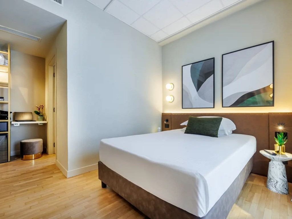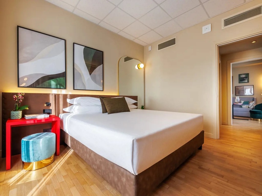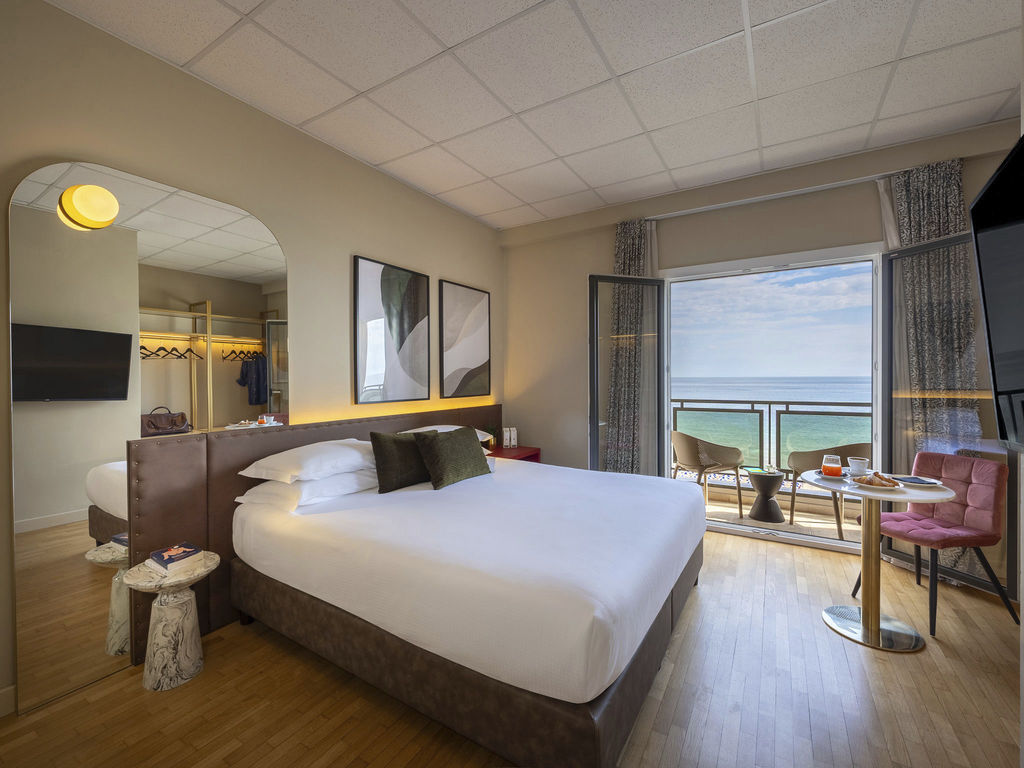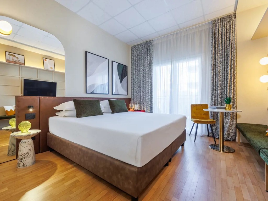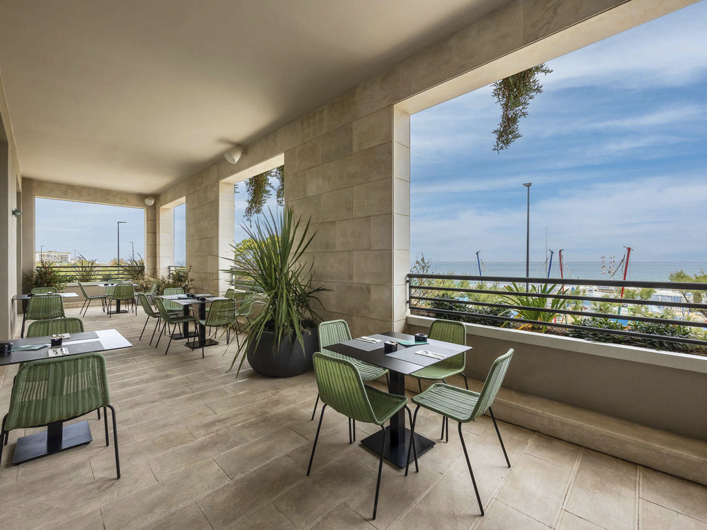 Introduzione: Situato in ottima posizione fronte mare direttamente sulla spiaggia, a pochi passi dal centro di Pesaro.CARATTERISTICHE: ristorante e sala colazioni, lounge bar "Roof 281" al sesto piano, pool bar, piscina nel piano ammezzato, zona solarium con lettini e ombrelloni, piscina separata per bambini, palestra. Parcheggio interno su prenotazione a pagamento (posti limitati). Animali ammessi con supplemento.RISTORAZIONE: ricca colazione a buffet dolce e salata, cena servita al tavolo con sceltra tra 3 primi e secondi e buffet di antipasti, contorni e dolci. A disposizione alimenti base per intolleranze e allergie alimentari.CAMERE: The Wind - singola: con balcone vista città, letto alla francese, armadiatura a vista e bagno con doccia e asciugacapelli, dotate di aria condizionata, Wi-fi, smart TV, minibar, cassetta di sicurezza, ciabattine e linea di cortesia. Roosvelt Field - doppia classica: con vista città, letto matrimoniale o due twin, armadiatura a vista e bagno con doccia e asciugacapelli, dotate di aria condizionata, Wi-fi, smart TV, minibar, cassetta di sicurezza, ciabattine e linea di cortesia. Paris - doppia superior: con balcone vista mare, letto matrimoniale e bagno con doccia e asciugacapelli, dotate di aria condizionata, Wi-fi, smart TV, cassetta di sicurezza, ciabattine e linea di cortesia. The Spirit of Two - doppia deluxe: con terrazzo fronte mare, letto matrimoniale o due twin e bagno con doccia e asciugacapelli, dotate di aria condizionata, Wi-fi, smart TV, cassetta di sicurezza, ciabattine e linea di cortesia. The Spirit of Three - tripla deluxe: con terrazzo fronte mare, letto matrimoniale o due twin e bagno con doccia e asciugacapelli, dotate di aria condizionata, Wi-fi, smart TV, cassetta di sicurezza, ciabattine e linea di cortesia. New York - Junior Suite city view: con terrazzo vista città, letto matrimoniale o due twin, salotto con divano e bagno con doccia e asciugacapelli, dotate di aria condizionata, Wi-fi, smart TV, cassetta di sicurezza, ciabattine e linea di cortesia.SERVIZI: Wi-Fi free in tutta la struttura, utilizzo palestra. A pagamento: lavanderia, transfer ed escursioni, noleggio auto e biciclette fino ad esaurimento e bike room, centro congressi. In spiaggia: campi sportivi, area giochi bambini.