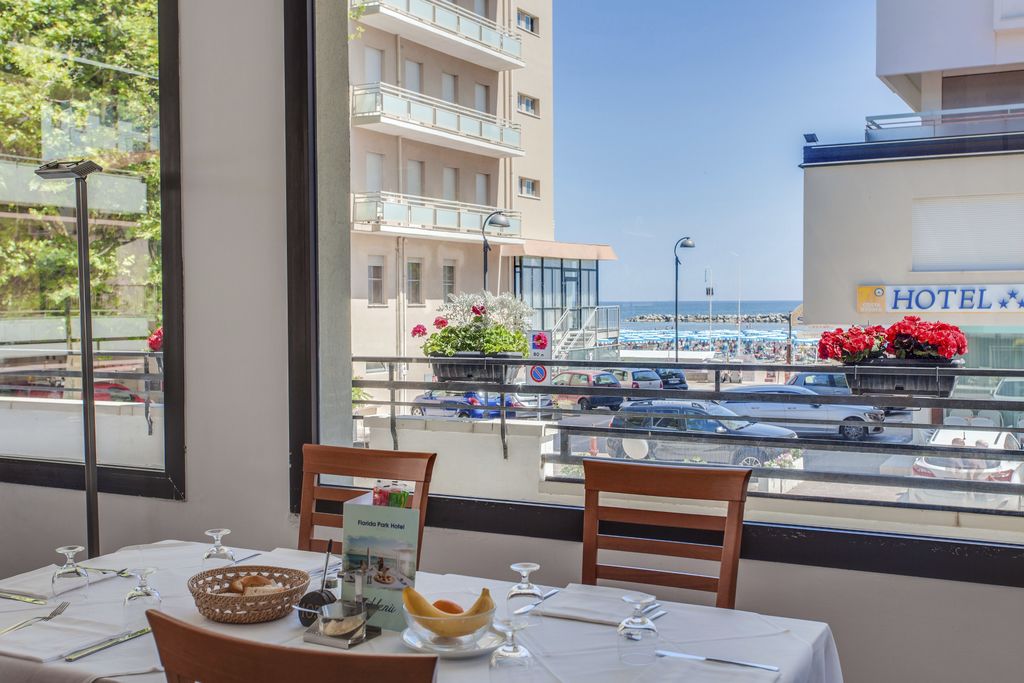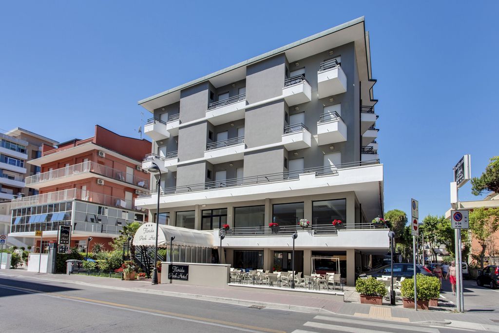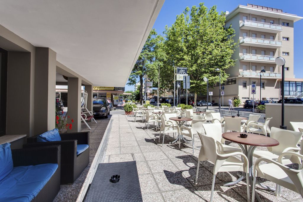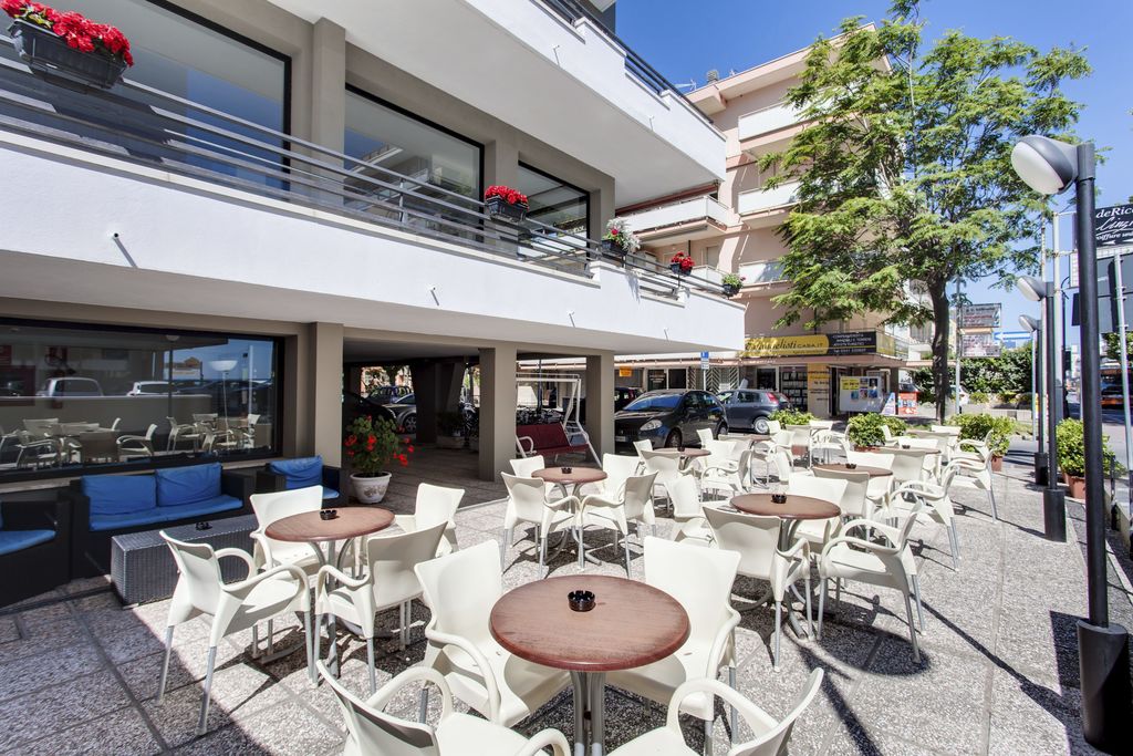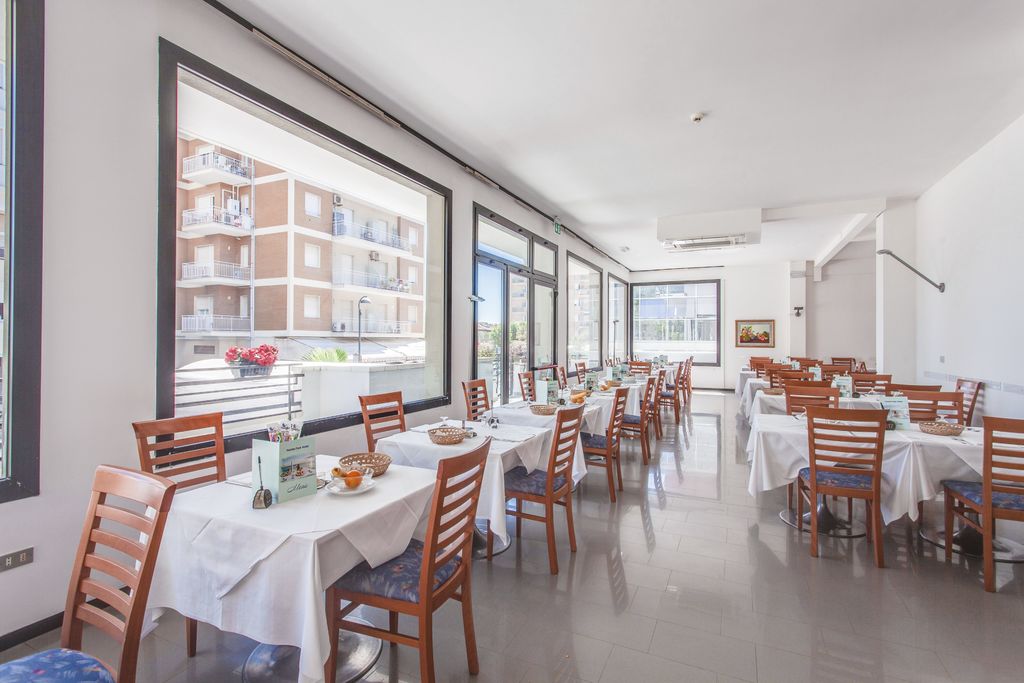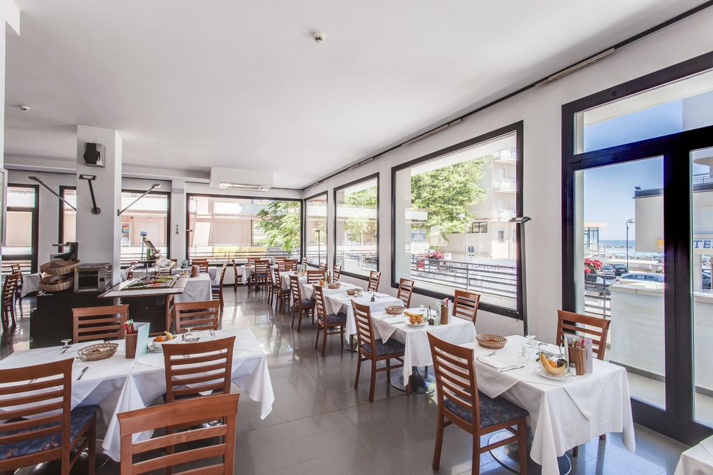 Introduzione: Hotel moderno e confortevole, è situato in posizione privilegiata direttamente sul lungomare a pochi passi dal viale pedonale del centro.CARATTERISTICHE: completamente climatizzato, dispone di reception, ampia sala soggiorno e relax, accogliente sala ristorante, sala TV, american bar e ascensore a norma per disabili. Spazio giardino esterno attrezzato con tavoli, sedie e angolo giochi per bambini. Terrazzo solarium panoramico con sedie a sdraio. Parcheggio convenzionato a 700 m disponibile con supplemento.RISTORAZIONE: ricca colazione a buffet dolce e salato servita al tavolo, cucina tipica regionale particolarmente curata, tre menu a scelta con piatti a base di carne e pesce, invitanti buffet di verdure crude e cotte. Possibilità di preparazione pasti per celiaci con alimenti di base forniti dall'hotel (no AIC). Menu differenziati per bambini serviti ad orari flessibili a richiesta. Disponibilità di forno a microonde in sala ristorante. Bevande ai pasti senza limitazione (acqua, vino locale, cola e aranciata) con supplemento obbligatorio.CAMERE: in gran parte con balcone e vista mare, sono dotate di telefono, TV LED 22”, aria condizionata, Wi-Fi free, cassaforte e servizi privati con box doccia (in gran parte) e asciugacapelli; mini frigo a richiesta con supplemento. Ampie Family Room comunicanti con un solo bagno (senza balcone) per 4 o 5 persone e camere a norma per disabili a richiesta.SERVIZI: Wi-Fi free, biciclette con seggiolini. Animazione giornaliera (01.06 - 06.09) con Mini Club, feste danzanti con rinfresco, serate di gala e a tema, acquagym, ginnastica e balli di gruppo. Ingresso alla piscina in spiaggia dell'hotel Holiday Park, a 150 m dall’hotel. A disposizione passeggini, vaschette, culle e seggioloni. In spiaggia convenzionata (Bagni 85): Mini Club (in orari prestabiliti), zone giochi, risveglio muscolare, fitness, sport sulla sabbia, ping-pong e area riservata per cani su prenotazione a pagamento. Servizio spiaggia (1 ombrellone + 2 lettini a camera) disponibile con supplemento.
