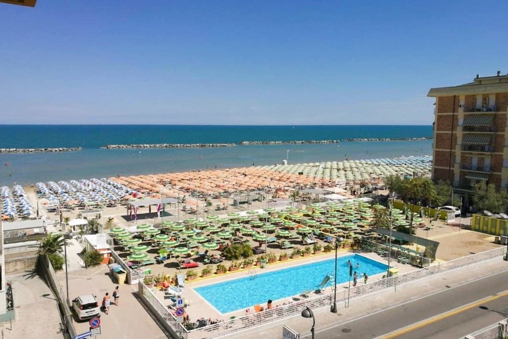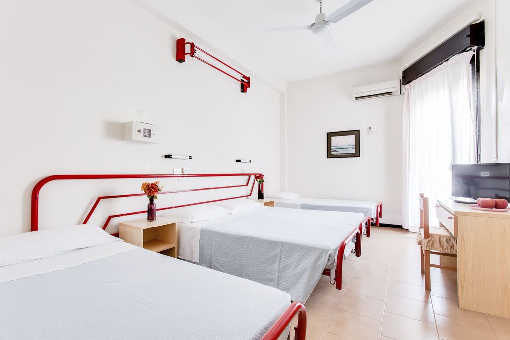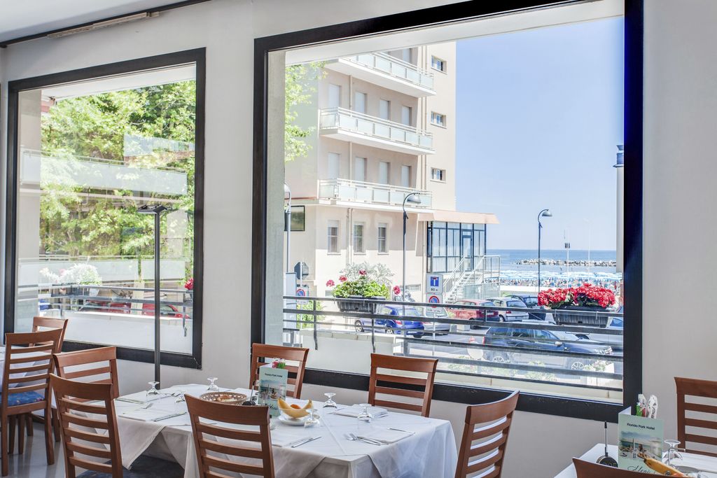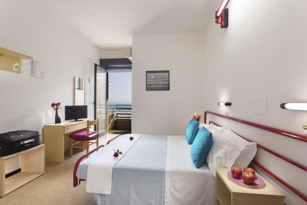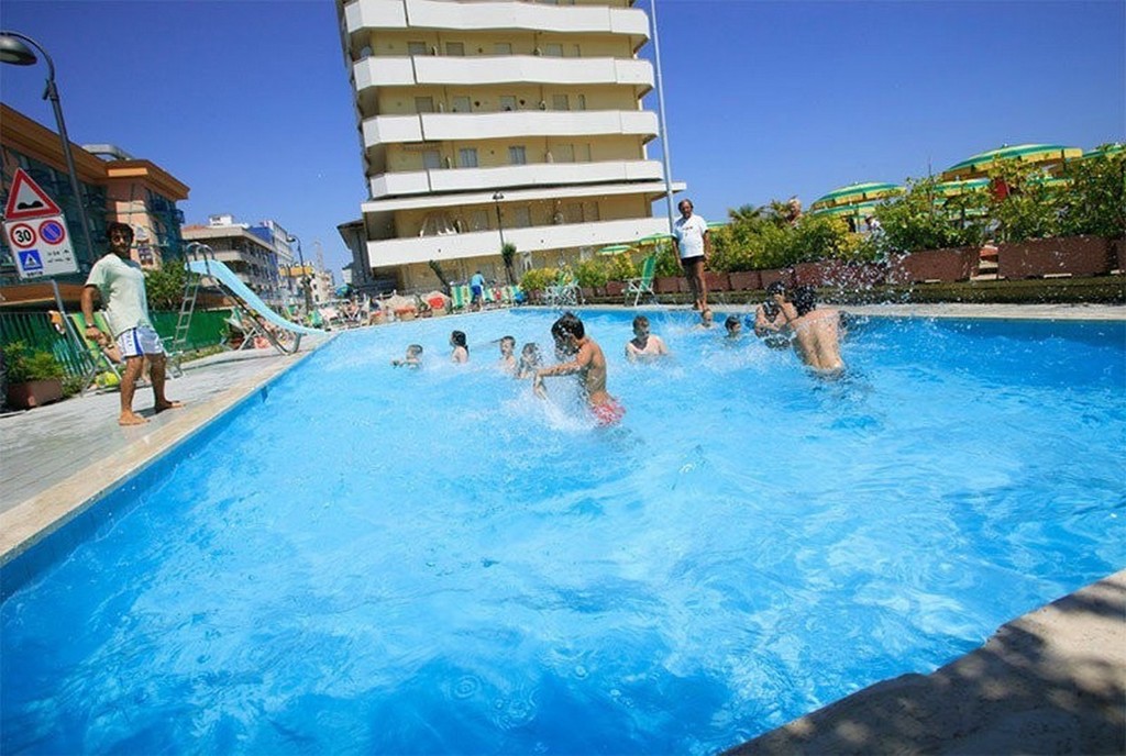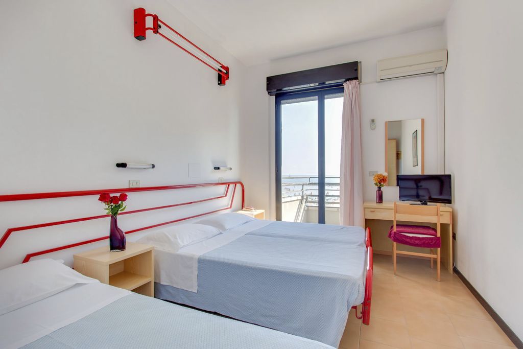 Introduzione: Hotel moderno e confortevole, è situato in posizione privilegiata direttamente sul lungomare a pochi passi dal viale pedonale del centro.CARATTERISTICHE: completamente climatizzato, dispone di reception, ampia sala soggiorno e relax, accogliente sala ristorante, sala TV, american bar e ascensore a norma per disabili. Spazio giardino esterno attrezzato con tavoli, sedie e angolo giochi per bambini. Terrazzo solarium panoramico con sedie a sdraio. Parcheggio convenzionato a 700 m disponibile con supplemento.RISTORAZIONE: ricca colazione a buffet dolce e salato servita al tavolo, cucina tipica regionale particolarmente curata, tre menu a scelta con piatti a base di carne e pesce, invitanti buffet di verdure crude e cotte. Possibilità di preparazione pasti per celiaci con alimenti di base forniti dall'hotel (no AIC). Menu differenziati per bambini serviti ad orari flessibili a richiesta. Disponibilità di forno a microonde in sala ristorante. Bevande ai pasti senza limitazione (acqua, vino locale, cola e aranciata) con supplemento obbligatorio.CAMERE: in gran parte con balcone e vista mare, sono dotate di telefono, TV LED 22”, aria condizionata, Wi-Fi free, cassaforte e servizi privati con box doccia (in gran parte) e asciugacapelli; mini frigo a richiesta con supplemento. Ampie Family Room comunicanti con un solo bagno (senza balcone) per 4 o 5 persone e camere a norma per disabili a richiesta.SERVIZI: Wi-Fi free, biciclette con seggiolini. Animazione giornaliera (01.06 - 06.09) con Mini Club, feste danzanti con rinfresco, serate di gala e a tema, acquagym, ginnastica e balli di gruppo. Ingresso alla piscina in spiaggia dell'hotel Holiday Park, a 150 m dall’hotel. A disposizione passeggini, vaschette, culle e seggioloni. In spiaggia convenzionata (Bagni 85): Mini Club (in orari prestabiliti), zone giochi, risveglio muscolare, fitness, sport sulla sabbia, ping-pong e area riservata per cani su prenotazione a pagamento. Servizio spiaggia (1 ombrellone + 2 lettini a camera) disponibile con supplemento.