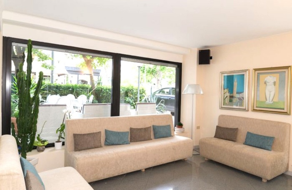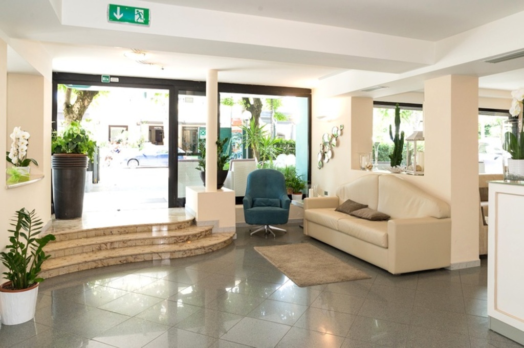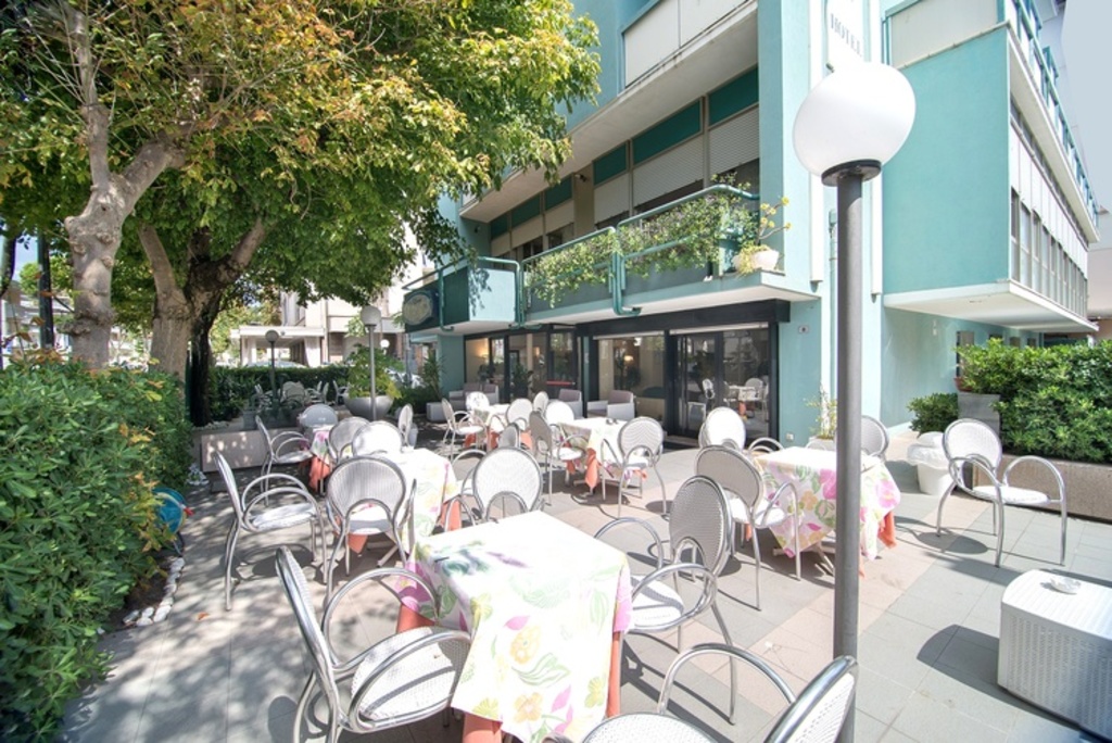 Introduzione: Ubicato nel centro di Riccione, a soli 600 m da Viale Ceccarini a 20 m dalla spiaggia. L'accoglienza ed i servizi sono curati direttamente dalla proprietà che gestisce da oltre 40 anni.CARATTERISTICHE: completamente ristrutturato e climatizzato, dispone di reception h24, ascensore, sala soggiorno con TV LCD 60", bar, sala ristorante, giardino all'aperto e parcheggio a 500 m gratuito e sempre disponibile.RISTORAZIONE: ricca colazione dolce e salata con biscotti e torte fatte in casa, cucina tipica romagnola particolarmente curata, tre menu a scelta con pesce sempre presente. Colazione, antipasti e verdure a buffet parzialmente assistito. Acqua inclusa ai pasti. Possibilità, a richiesta con supplemento di "Box Lunch" da asporto con un piatto a scelta, pane, frutta e acqua.CAMERE: Comfort: dotate di balcone, telefono, cassaforte, Wi-Fi free, TV LCD 32", aria condizionata e servizi privati con box doccia e asciugacapelli; vista mare laterale e camera Panoramica, situata all'ultimo piano, con tetto in legno e ampia terrazza con vista mare laterale, a richiesta con supplemento.TUTTO INCLUSO: comprende le bevande ai pasti (acqua, vino locale, birra, cola e aranciata) e il servizio spiaggia (1 ombrellone o tenda + 2 lettini a camera).SERVIZI: colonnina elettrica per ricarica auto (novità 2025), biciclette, Wi-Fi free, cene e serate a tema. In spiaggia convenzionata (bagni 92): area giochi per bambini, bar, fasciatoio, Wi-Fi, sedie job, ping pong e feste periodiche.