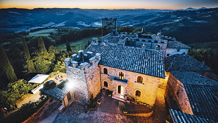 Il Castello di Giomici è una fortezza medievale risalente al secolo XI, costruita per l’avvistamento dei nemici e la difesa della Valle del Chiascio dagli attacchi di Perugia e Assisi nemici storici di Gubbio. Tenute in buone condizioni, ci sono 2 torri, alcune case e la chiesetta del 1154 che ospita affreschi eseguiti tra il 1200 ed il 1600. La ristrutturazione del Castello insieme alla Torre, alla chiesetta, alle mura di cinta e delle vicine fattorie è stata fatta preservandone le caratteristiche architettoniche e storiche. Situato a circa 6 km da Valfabbrica, nel cuore dell’Umbria, il Castello è breve distanza dalle più belle città dell’Umbria: Assisi, Gubbio, Perugia, Orvieto, Spoleto e Todi.