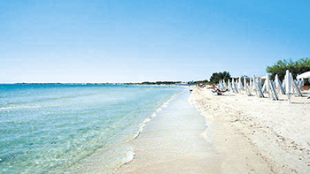 La spiaggia, di sabbia bianca e fine, accarezzata da un mare cristallino con fondale dolcemente digradante, dista 200 metri dalla struttura ed è raggiungibile a piedi con una piacevole passeggiata. Il servizio spiaggia prevede 1 ombrellone e 2 lettini ed è a pagamento (da richiedere alla prenotazione - ombrelloni disponibili dalle ore 17.00 del giorno di arrivo alle ore 12.00 del giorno di partenza).