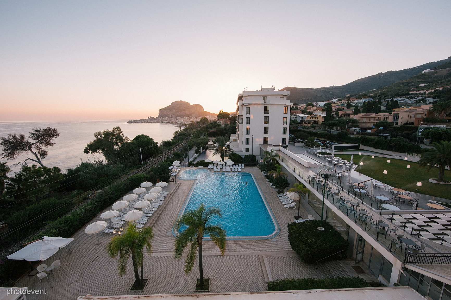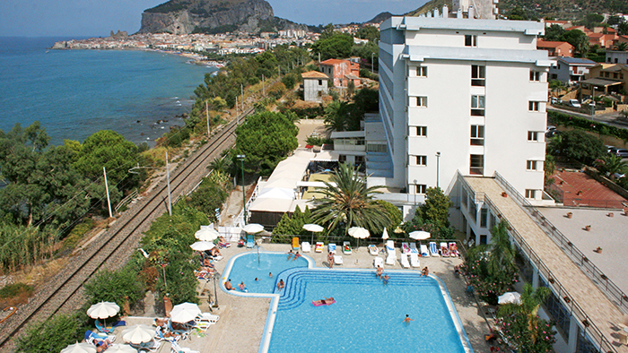 L'Hotel Santa Lucia Le Sabbie d'Oro si trova su un promontorio, affacciato sul golfo di Cefalù, città universalmente conosciuta come la “Perla del Tirreno”, di cui costituisce la prestigiosa porta d'ingresso lato ovest. L'hotel si trova a 2,5 km dal centro di Cefalù e a 5 minuti d'auto dalla stazione ferroviaria. A soli 50 metri dall'hotel c'è una fermata dell'autobus che offre collegamenti con il centro della città.