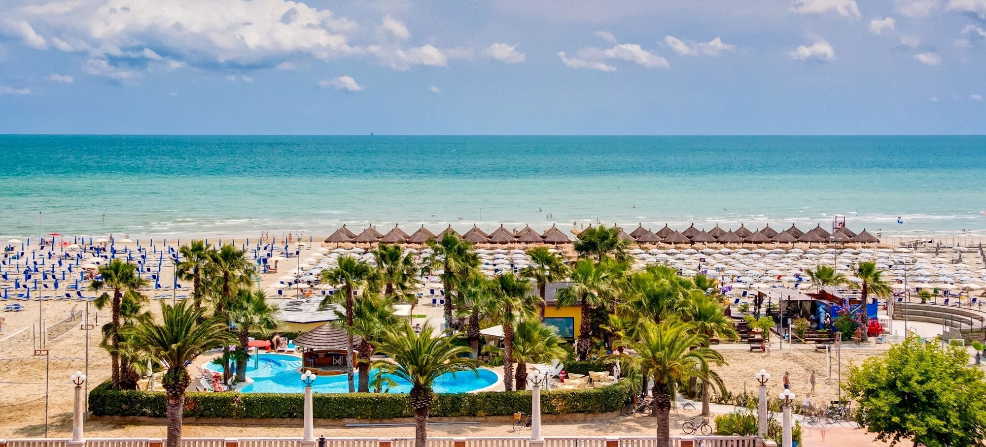 La Tessera Club è inclusa e comprende servizio spiaggia con 1 ombrellone e 2 sedie a sdraio a camera in file in base alla disponibilità, utilizzo dei servizi del Beach Village con piscina caraibica con idromassaggio, campi da calcetto, beach volley, beach tennis, bocce, ping pong, canoa e pedalò, area giochi per bambini, baby parking in spiaggia per infant 1-3 anni (dal 05/07/2026 al 28/08/2026 in orari stabiliti), animazione diurna e serale con giochi e tornei, serate danzanti, spettacoli di varietà e cabaret, Miniclub per bambini 4-12 anni con baby-dance, baby-show, merende e feste con la mascotte.