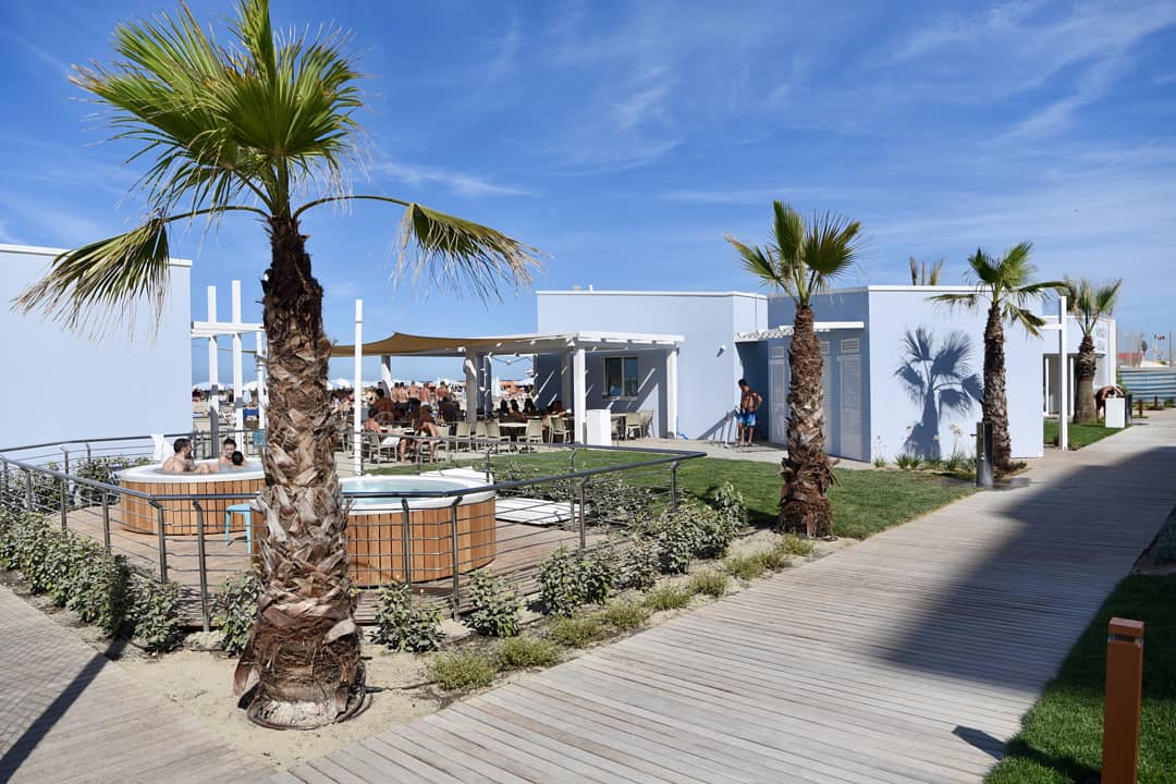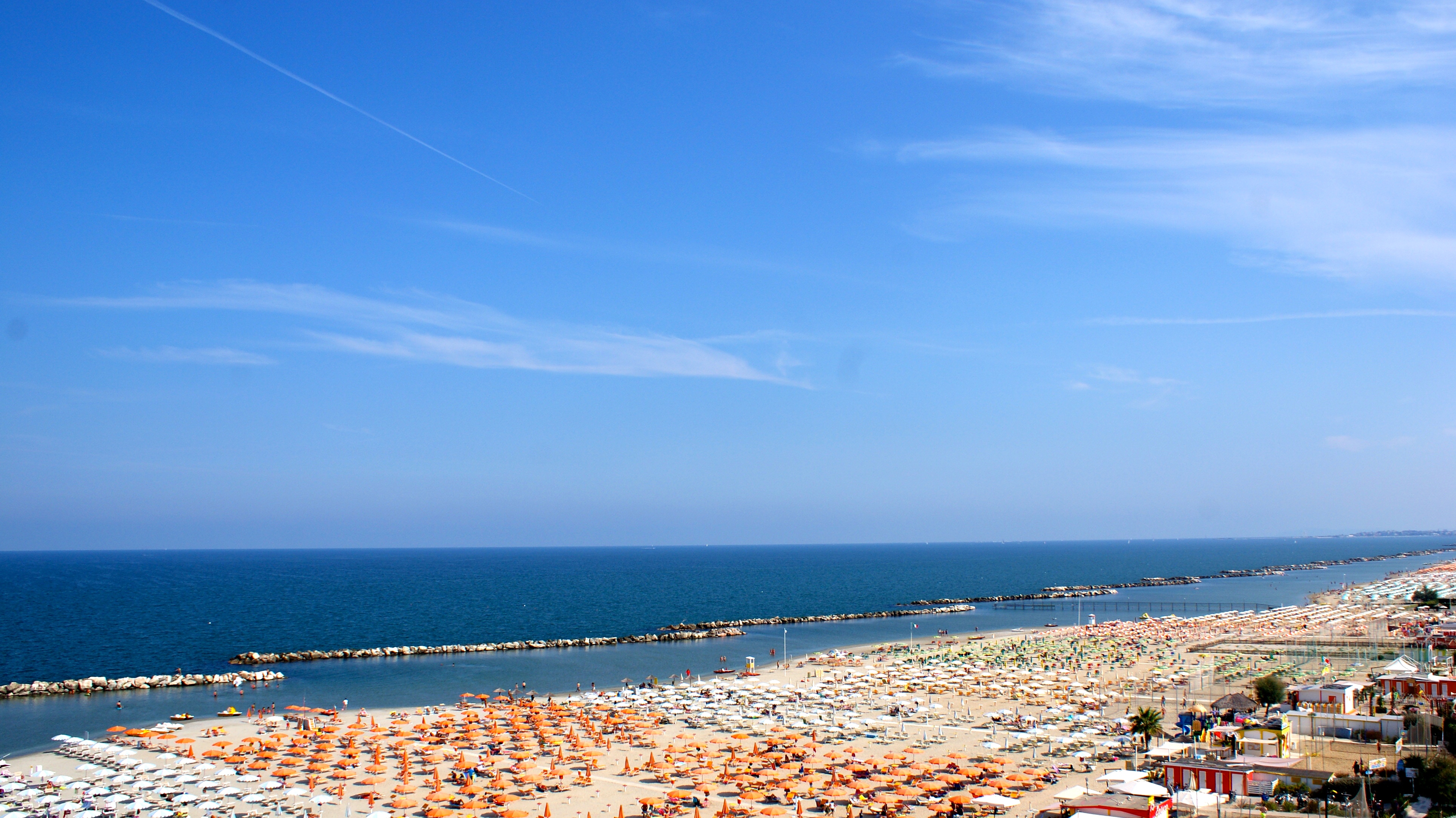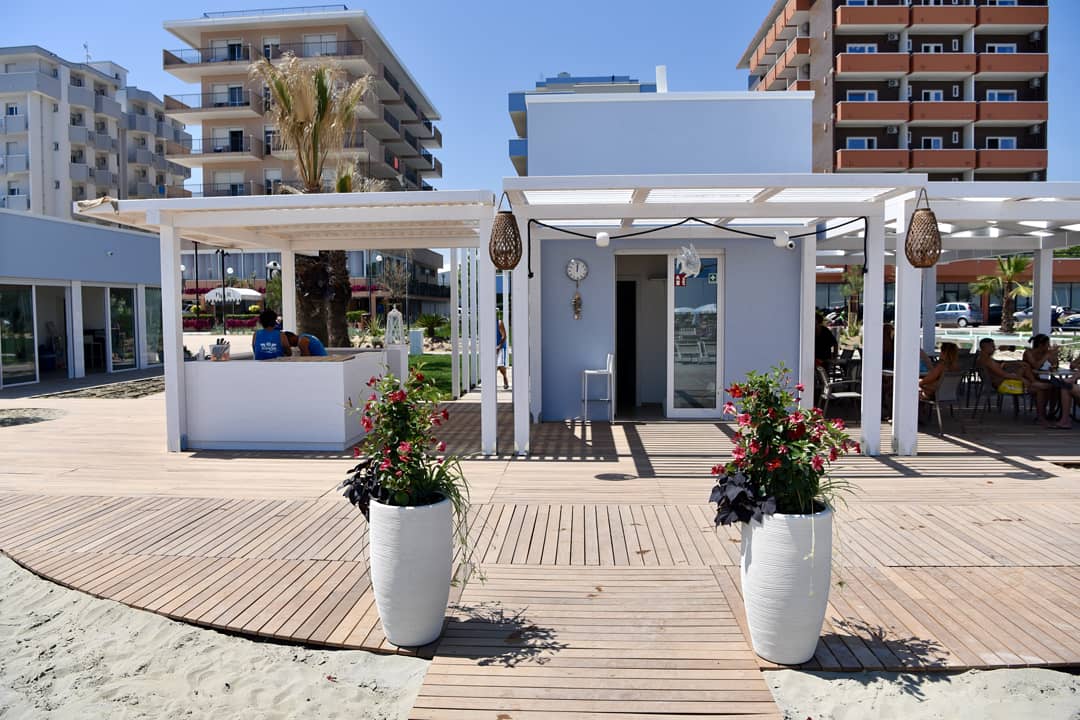 L'ampia spiaggia di sabbia è raggiungibile con attraversamento stradale. Il servizio spiaggia è incluso per soggiorni dal 28/06/2026 al 30/08/2026 e comprende 1 ombrellone e 2 lettini a camera.