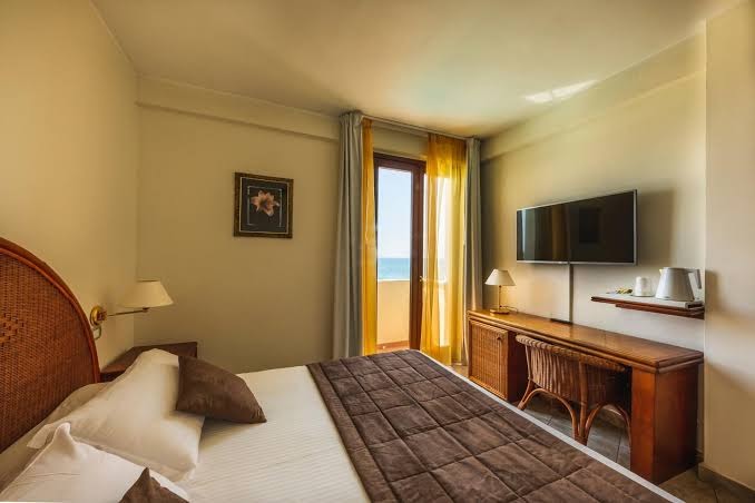 Le camere dispongono di servizi privati con doccia, aria condizionata, TV, minibar, telefono, cassaforte, bollitore per te e tisane. Si distinguono in camere doppie Classic (occupazione massima 2 adulti + 1 infant 0-3 anni non compiuti), con affaccio sul parcheggio, alcune consentono l’aggiunta di una culla e camere triple/quadruple Superior (occupazione massima 4 adulti) più ampie e confortevoli, con vista mare e balcone. Le camere quadruple dispongono di letto a castello. Su richiesta al call center: camer singole (riduzione 5 euro rispetto alla camera doppia), camera classic vista mare (supplemento 10 euro a camera al giorno), camera Junior Suite (supplemento 20 euro a camera al giorno) con zona matrimoniale separata e bagno con vasca idromassaggio.