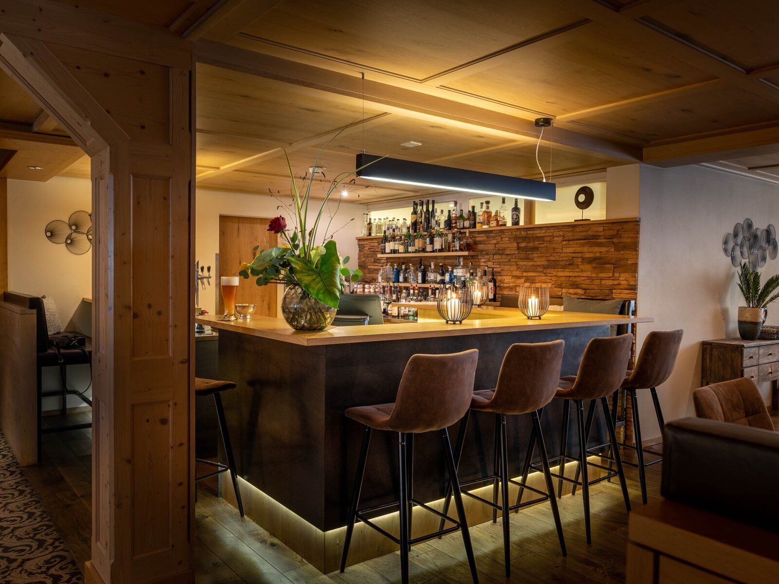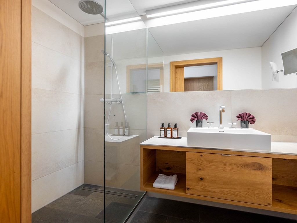 A disposizione degli ospiti reception, bar, ristorante (con servizio a buffet ed è possibile richiedere il pranzo al sacco: preparato autonomamente dal buffet della colazione / senza bevande), lounge con camino, una terrazza solarium dallo stile elegante, Alpin Spa di 1200 m² con biosauna, sauna finlandese, doccia a pioggia profumata, ampie sale relax e altalene sospese, ampia piscina con cascata d'acqua, kit spa (a pagamento) e trattamenti/massaggi (a pagamento), culla per infant (15 euro per soggiorno da pagare in loco - su richiesta) e parcheggio interno secondo disponibilità (2 euro al giorno per auto da pagare in loco - su richiesta al call center).