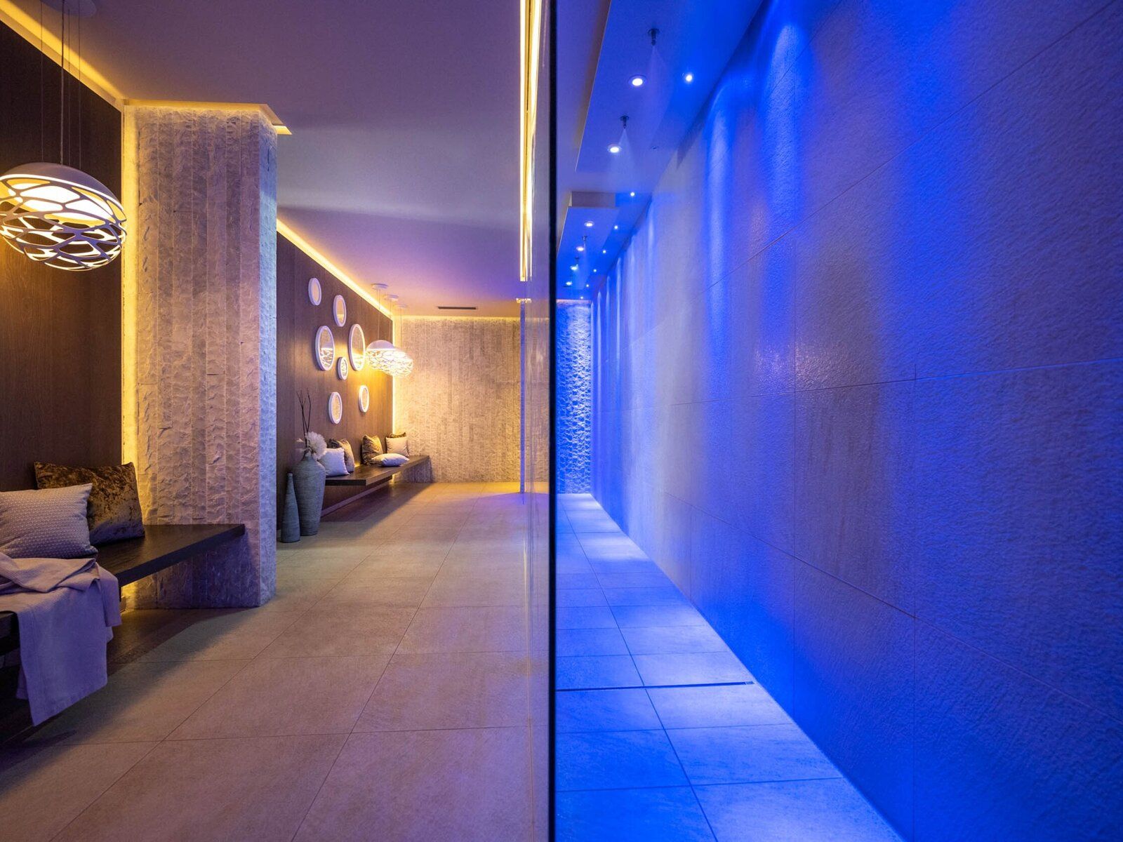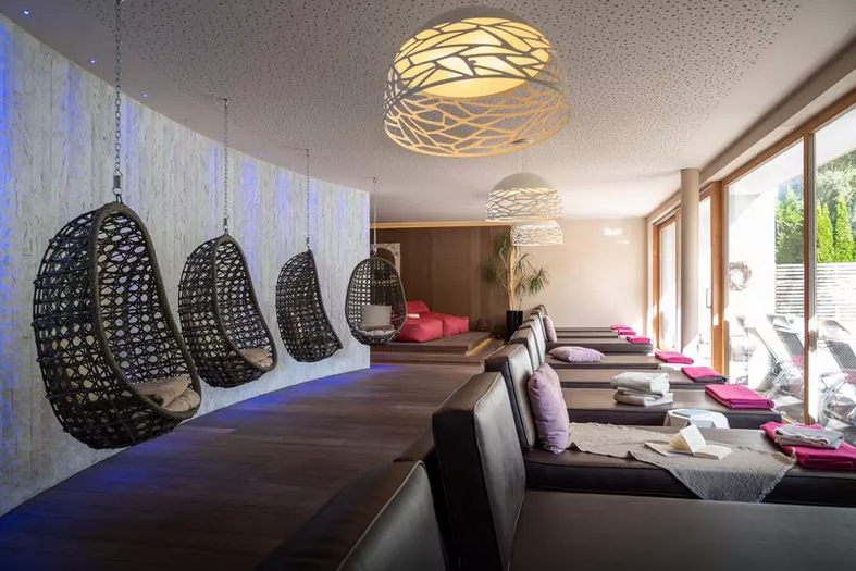 * Utilizzo dell'area benessere di 1200 m² con biosauna, sauna finlandese, doccia a pioggia profumata, ampie sale relax, altalene sospese e ampia piscina