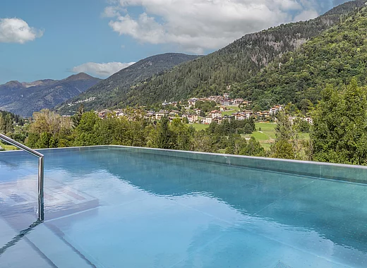 A disposizione degli ospiti reception, ascensore, ristorante (su richiesta menu per celiaci), bar, sala TV, deposito sci/scarponi riscaldato, area giochi e sala giochi per bambini, piscina coperta riscaldata (aperta dalle 08 alle 20) con area bambini con miniscivolo e cascata, vasca idromassaggio, piscina scoperta riscaldata (aperta dalle 09 alle 20) attrezzata con lettini secondo disponibilità, centro benessere con 2 saune, bagno turco, doccia emozionale, vasca di ghiaccio, massaggi e trattamenti (a pagamento), Miniclub per bambini 3-10 anni con giochi e laboratori creativi (nei mesi di luglio e agosto, tutti i giorni escluso il sabato - secondo orari e programma in loco), culla per infant 0-2 anni non compiuti su richiesta (gratuita), connessione Wi-Fi nelle aree comuni (gratuita), parcheggio secondo disponibilità (gratuito).