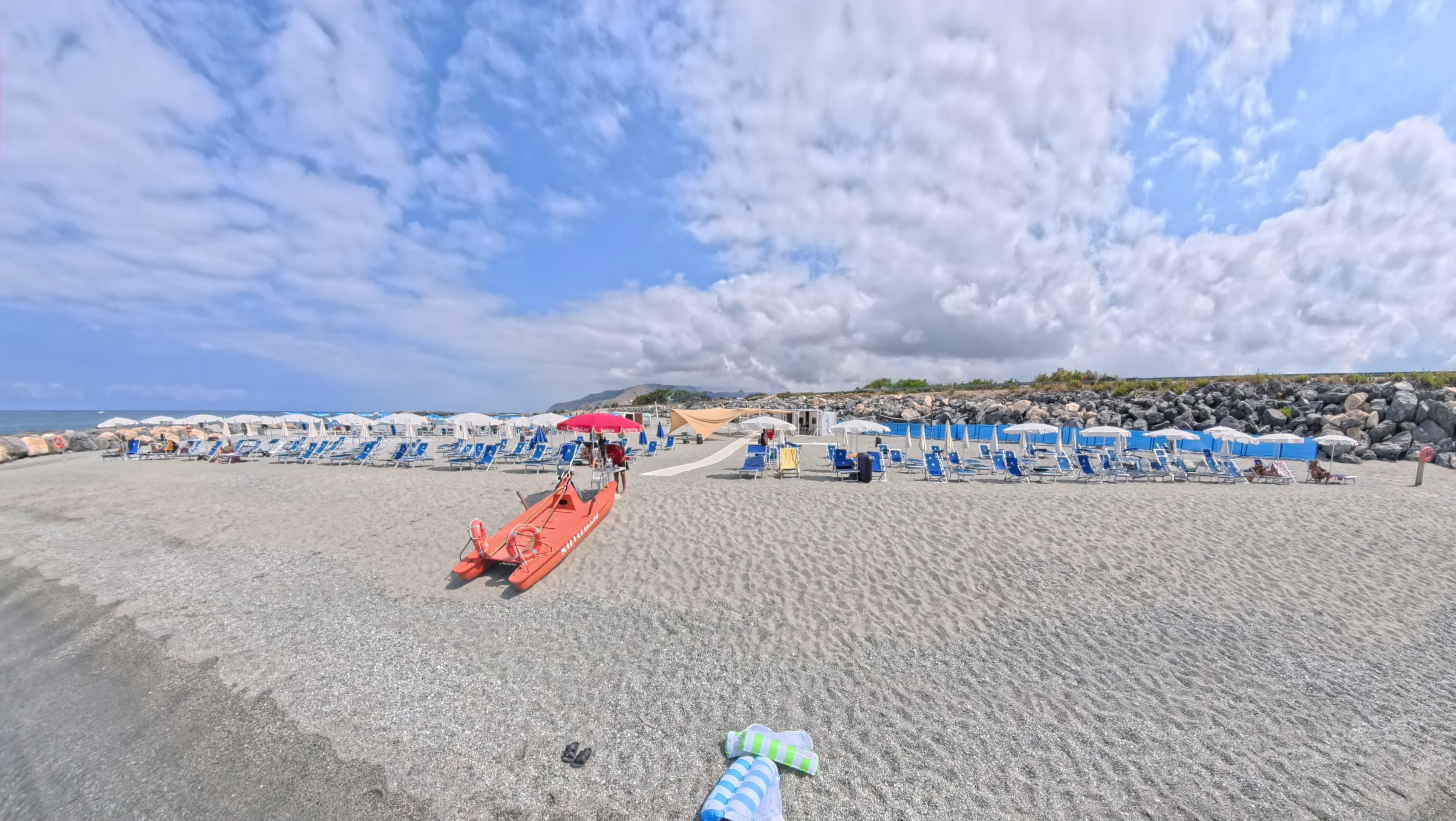 A soli 100 metri dalla spiaggia, raggiungibile attraverso un sottopassaggio privato. Il servizio spiaggia è incluso nella Tessera Club e comprende 1 ombrellone e 2 lettini per camera a partirte dalla 2° fila.