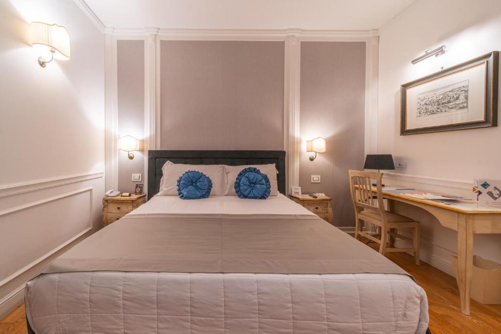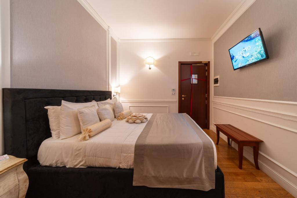 Le camere Deluxe (occupazione massima 4 adulti + 1 infant 0-3 anni non compiuti) dispongono di servizi privati con vasca/doccia, telefono, minibar, asciugacapelli, cassaforte, set di cortesia, aria condizionata, riscaldamento, tv, Wi-Fi e balcone. Su richiesta: sistemazioni idonee per ospiti diversamente abili e camere singole (con supplemento).