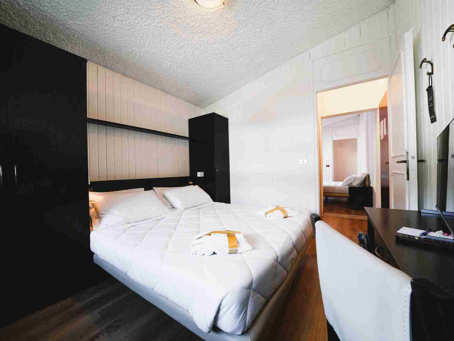 Le camere si suddividono in: Doppie, Quadruple standard, Quadruple comunicanti, Quadruple familiari (fino a 6 posti letto).La maggior parte di esse possiede un balcone. Tutte le camere sono dotate di servizi con doccia o vasca, asciugacapelli e televisore. Troverai al tuo arrivo un delizioso kit di cortesia in omaggio (bagnoschiuma, shampo, sapone).Amici a 4 Zampe