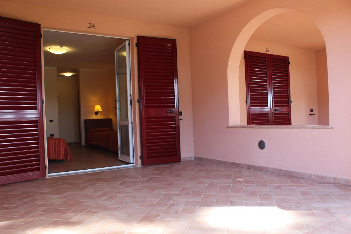 Le camere dell'Hotel Palace "Corte dei Tusci" sono spaziose e ben equipaggiate, con servizi privati dotati di doccia e asciugacapelli, aria condizionata, telefono, TV, minifrigo, cassaforte e patio o terrazzo. Le camere si suddividono in: standard, affacciate sulla pineta, lato mare/piscina, e superior, situate al secondo piano con vista mare, più ampie e con terrazzo attrezzato. Inoltre, sono disponibili camere per disabili su richiesta. Eventuali 3° e 4° letti sono letti piani veri.Amici a 4 Zampe