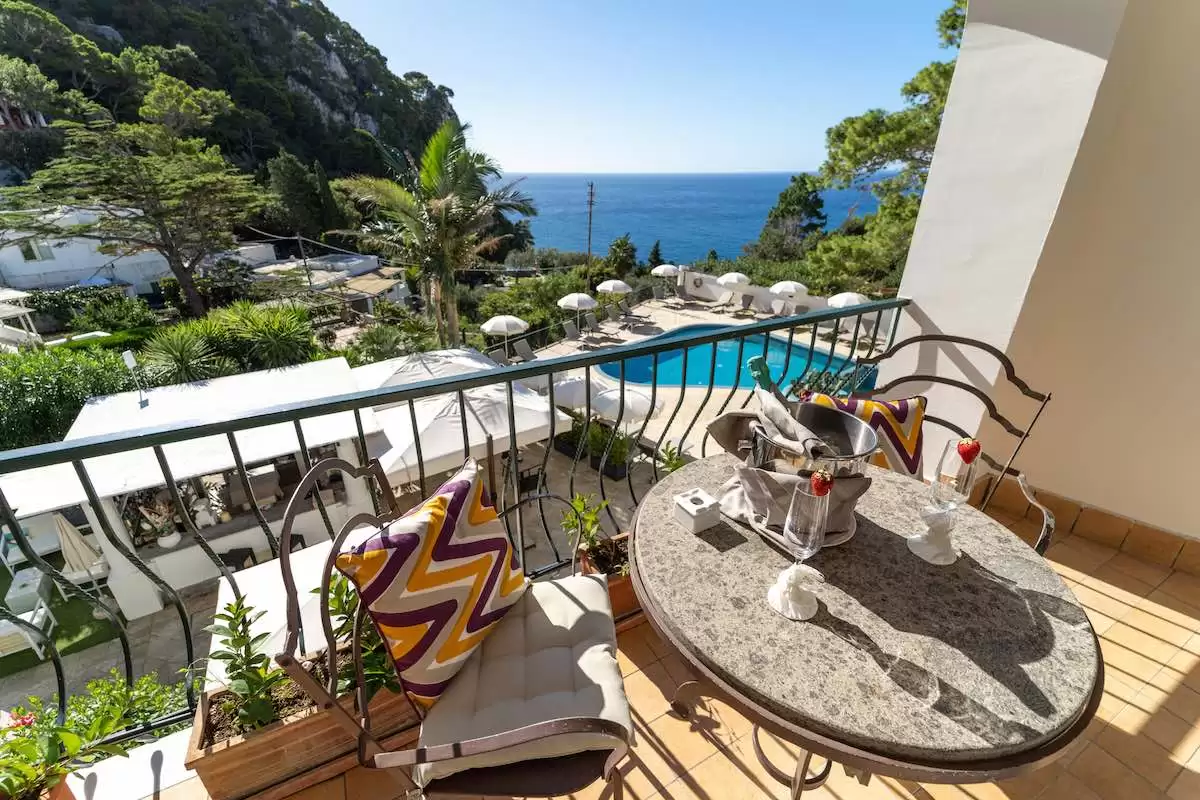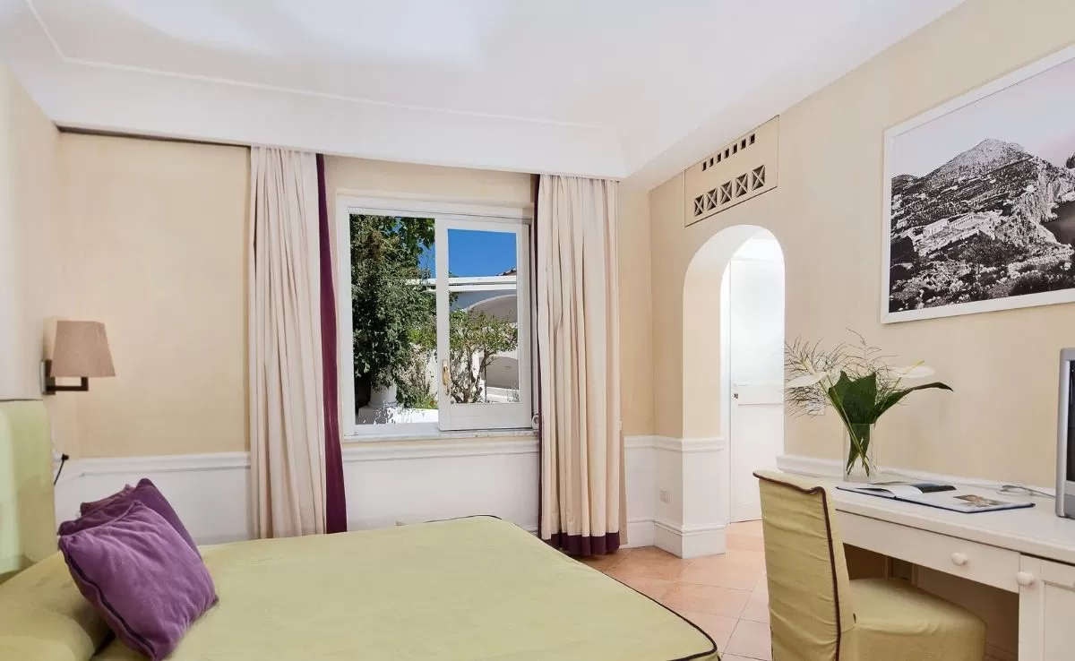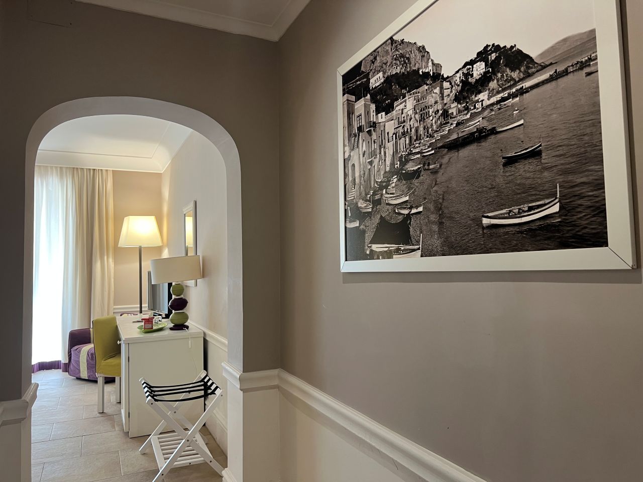 Le camere sono dotate di aria condizionata, Wi-Fi, minibar, set di cortesia, cassaforte, asciugacapelli, telefono, bagno privato con bidet e sono tutte non fumatori. Camera Classic: Ambienti raffinati ed essenziali, pensati per offrire il massimo comfort in un’atmosfera di pura armonia. 18mq. Superior con terrazzino: Le Superior si aprono sullo splendido scenario della Piccola Marina di Capri, offrendo un connubio di autenticità e comfort. 23mq. Deluxe con terrazzino vista mare: Lasciatevi avvolgere dalla magia di Capri, ammirando il mare dal vostro terrazzino privato. Qui, il tempo scorre lentamente, tra un momento di relax e un drink con l’orizzonte a far da sfondo. 23mq. "Ibiscus" Suite con terrazzo vista mare e vasca relax: Un rifugio esclusivo con vista mare anche dal letto. 45 mq.Amici a 4 Zampe