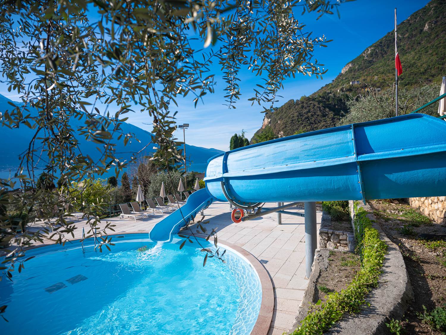 Culla disponibile gratuitamente ma non oltre il massimo occupazione della camera L'hotel offre trattamento di "All inclusive" che comprende: ristorazione con bevande incluse (come da orari indicati sotto) e animazione per adulti e bambini Servizio bar: aperto dalle ore 10:00 alle ore 23:00 con distribuzione di bevande self-service sia alcoliche che analcoliche Buffet snack point: dalle ore 10:00 alle ore 23:00 presso il bar dell'hotel Prima colazione: dalle ore 07:30 alle ore 10:00 al ristorante con servizio a buffet Light lunch: dalle ore12:30 alle ore 14:00 presso il ristorante o il Bar Villa Lucia (rinnovato, in spiaggia, aperto solo in altra stagione a discrezione della direzione) Cena: dalle ore 18:15 alle ore 20:30 con servizio a buffet presso il ristorante dell'hotel Bevande ai pasti: self service di caffè e tè, vino bianco e rosso, cola, aranciata, acqua minerale e birra Vietato fumare in tutte le sale comuni e nelle camere Offerta speciale: Gardaland Park Free: 1 biglietto omaggio a persona/soggiorno per soggiorni di minimo 7 notti all'interno del periodo dal 04.07 al 30.08 (in/out), 20% di sconto sul green fee c/o Golf Club Paradiso del Garda Intrattenimento serale: dal 28.03 al 13.05 e dal 14.09 al 23.10 con musica dal vivo (3 volte la settimana) Intrattenimento diurno e serale per adulti e bambini dal 14.05 al 13.09 con tornei, ginnastica, giochi e serate di intrattenimento (animazione spoertiva da fine giugno a fine agosto) Miniclub 6-12 anni e Juniorclub 13-17 anni Navetta dell'Hotel gratuita per il centro di Limone L’albergo dispone di quattro piscine. Le vasche all’aperto sono tre: una è la principale, con area per bambini piccoli; le altre due, situate nella parte alta della struttura, sono adatte al divertimento dei più piccoli, grazie a una profondità ridotta e alla presenza di uno scivolo. La vasca al coperto è parte del piccolo centro benessere Petit Coin, insieme con la sauna. Spiaggia privata (separata da strada/tunnel) Carte di credito ammesse: America Express, Vsa, Carta Si, Mastercard, Bancomat. Accettate solo con una spesa minima di Euro 50,00 Parcheggio non custodito Garage non custodito Animali domestici ammessi, a pagamento (massimo 10 kg, non ammessi nelle zone comuni e in spiaggia) Aria condizionata accesa a discrezione dell'hotel/condizioni meteo, da circa metà giugno a metà settembre Hotel non adatto per disabili Wi-fi al ricevimento e nelle aree comuni Cassaforte alla reception, è richiesta una cauzione per le chiavi) Edificio Villa Lucia dista circa 50 metri dagli altri edificiCamere