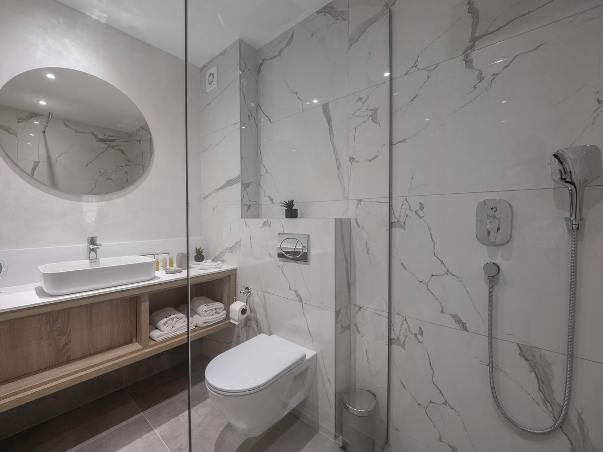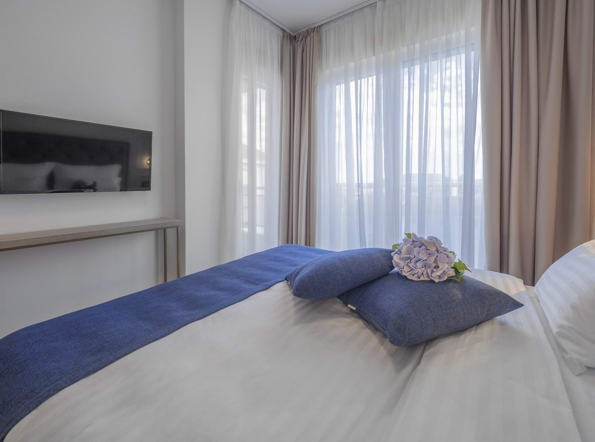 Camera doppia/matrimoniale superior: letto matrimoniale o due letti singoli, bagno (doccia, WC, asciugacapelli, prodotti da bagno, pantofole), aria condizionata, telefono con linea diretta, TV satellitare, Wi-Fi, minibar, bollitore, ferro da stiro, cassaforte, balcone. 20 mq. Appartamento con 1 camera da letto: soggiorno con divano letto, camera con letto matrimoniale, angolo cottura, bagno (doccia, WC, asciugacapelli, articoli da toeletta, pantofole), aria condizionata, telefono con linea diretta, 2 TV satellitari (1 in soggiorno, l'altra in camera da letto), Wi-Fi, minibar, bollitore, ferro da stiro, cassaforte, balcone. 36 mq.Amici a 4 Zampe